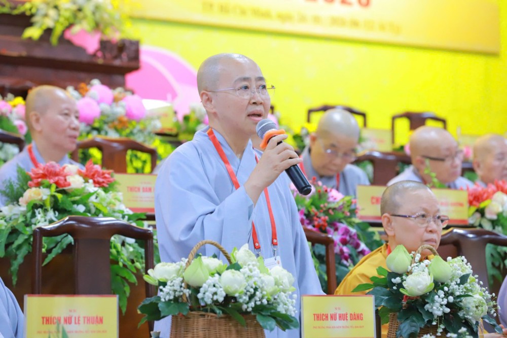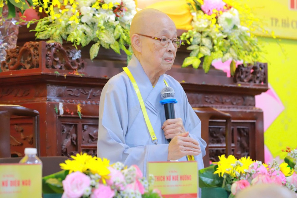 Tiếp đó, Ni trưởng Thích Nữ Huệ Hương ban đạo từ sách tấn, khuyến tấn đại chúng tiếp tục tinh tấn tu học, đoàn kết hòa hợp và đồng hành cùng Giáo hội trong giai đoạn mới.