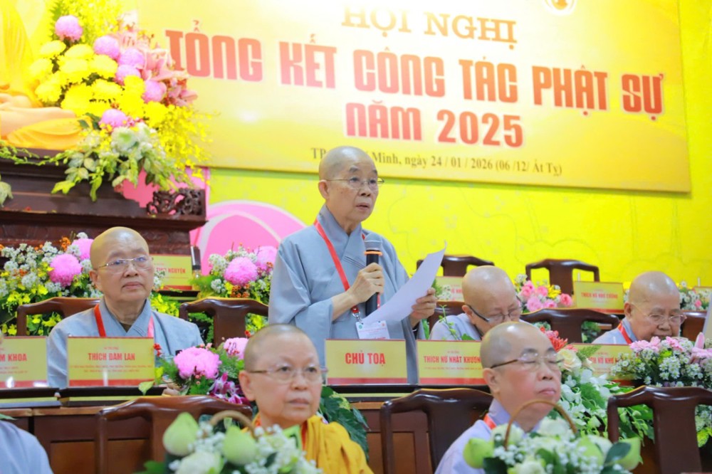 PSO - Chiều ngày 24/1/2026, trong khuôn khổ Hội nghị Tổng kết công tác Phật sự năm 2025, Phân ban Ni giới Trung ương tiếp tục chương trình làm việc nội bộ với phiên họp chuyên đề nhằm lắng nghe, ghi nhận và trao đổi các ý kiến đóng góp của chư Ni đại diện các tỉnh, thành trên cả nước.