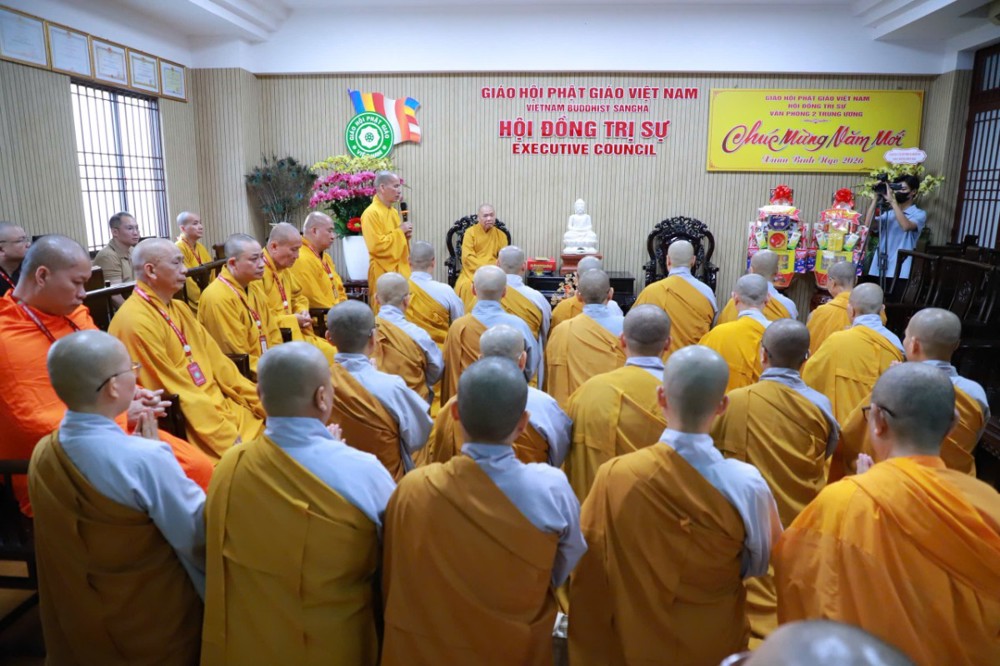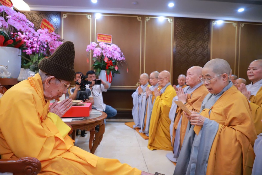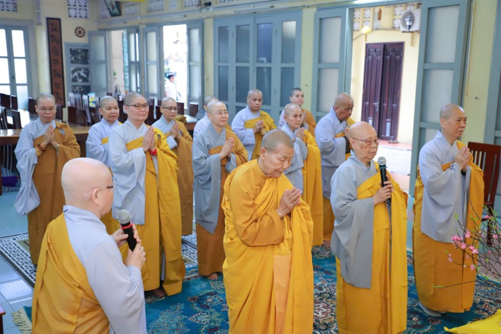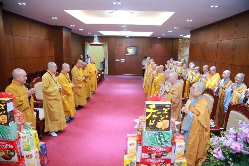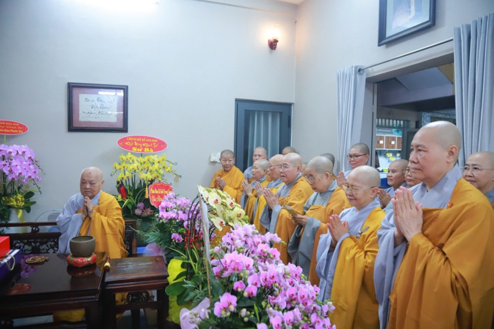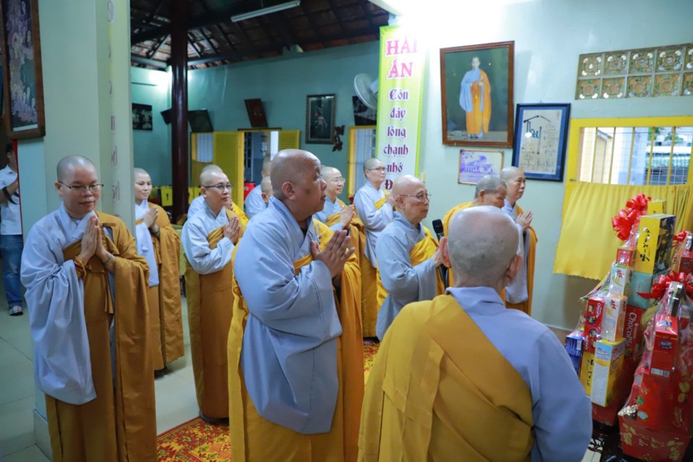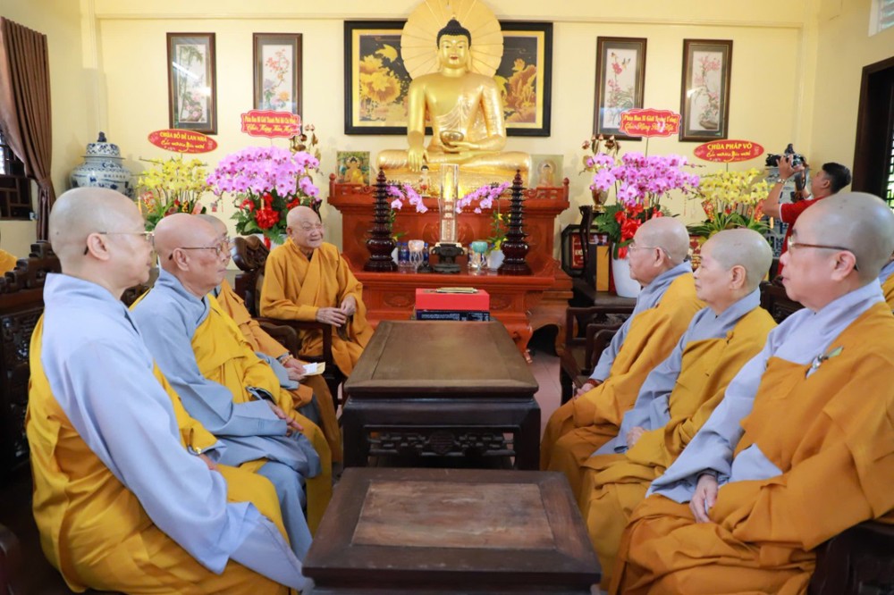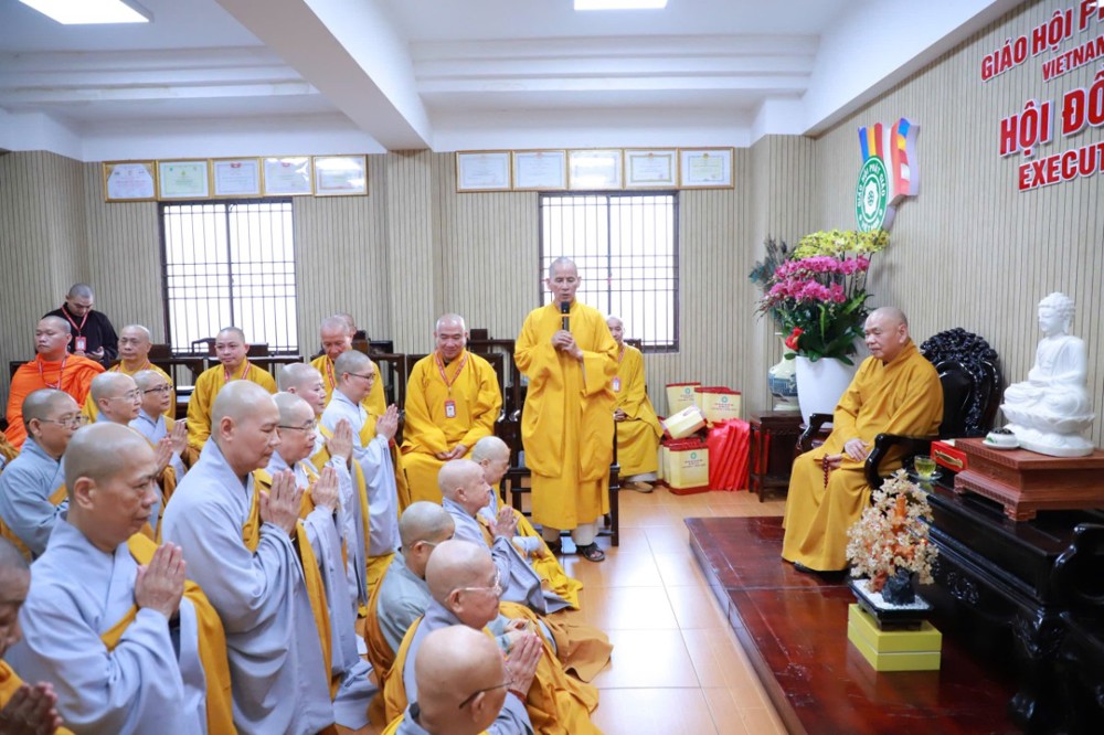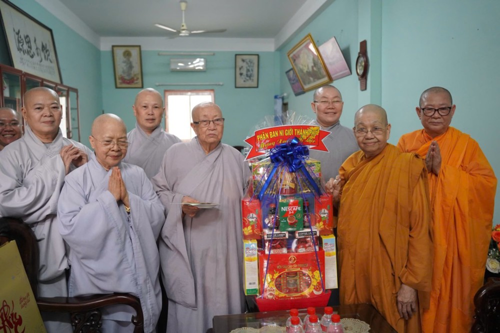 Theo lịch trình, phái đoàn đã đến vấn an sức khỏe, chúc Tết Trưởng lão Hòa thượng Thích Đức Nghiệp – Phó Pháp chủ HĐCM; Trưởng lão Hòa thượng Thích Thiện Nhơn – Phó Pháp chủ HĐCM, Chủ tịch HĐTS, Viện chủ chùa Minh Đạo; Trưởng lão Hòa thượng Thích Minh Thông – Phó Chánh Thư ký Ban Thường trực HĐCM, Trụ trì chùa Huệ Nghiêm; Trưởng lão Hòa thượng Thích Thiện Pháp – Ủy viên Thường trực HĐCM, Phó Chủ tịch Thường trực HĐTS; cùng chư Tôn đức lãnh đạo Văn phòng II Trung ương GHPGVN và Ban Trị sự GHPGVN TP.HCM.