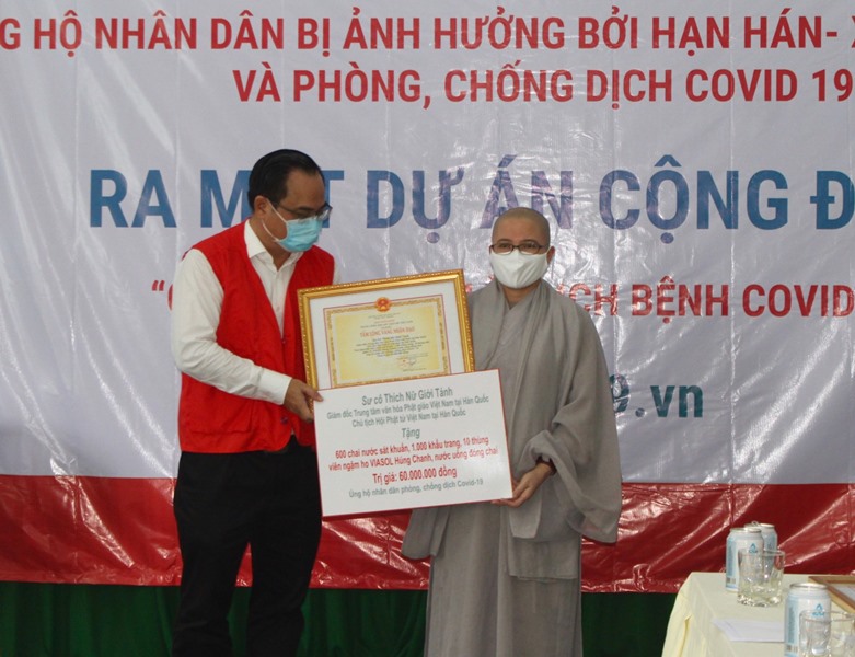 Phật giáo Việt Nam tại Hàn Quốc ủng hộ nhân dân bị ảnh hưởng hạn hán, xâm nhập mặn và phòng, chống dịch Covid -19Tham dự và phát biểu tại buổi phát động, SC.Thích Nữ Giới Tánh – UVDK HĐTS, UV Ban Phật giáo Quốc tế TƯ, Giám đốc Trung tâm Văn hóa Phật giáo Việt Nam tại Hàn Quốc, Chủ tịch Hội Phật tử Việt Nam tại Hàn Quốc chia sẻ, đây là một hoạt động rất có ý nghĩa trong bối cảnh cả nước chung tay phòng chống dịch Covid-19 và giúp nhân dân bị ảnh hưởng bởi hạn mặn xâm nhập vượt qua khó khăn hiện tại để ổn định cuộc sống.