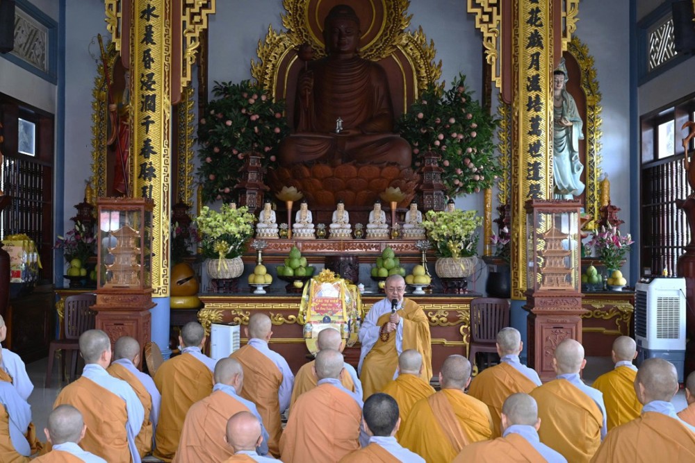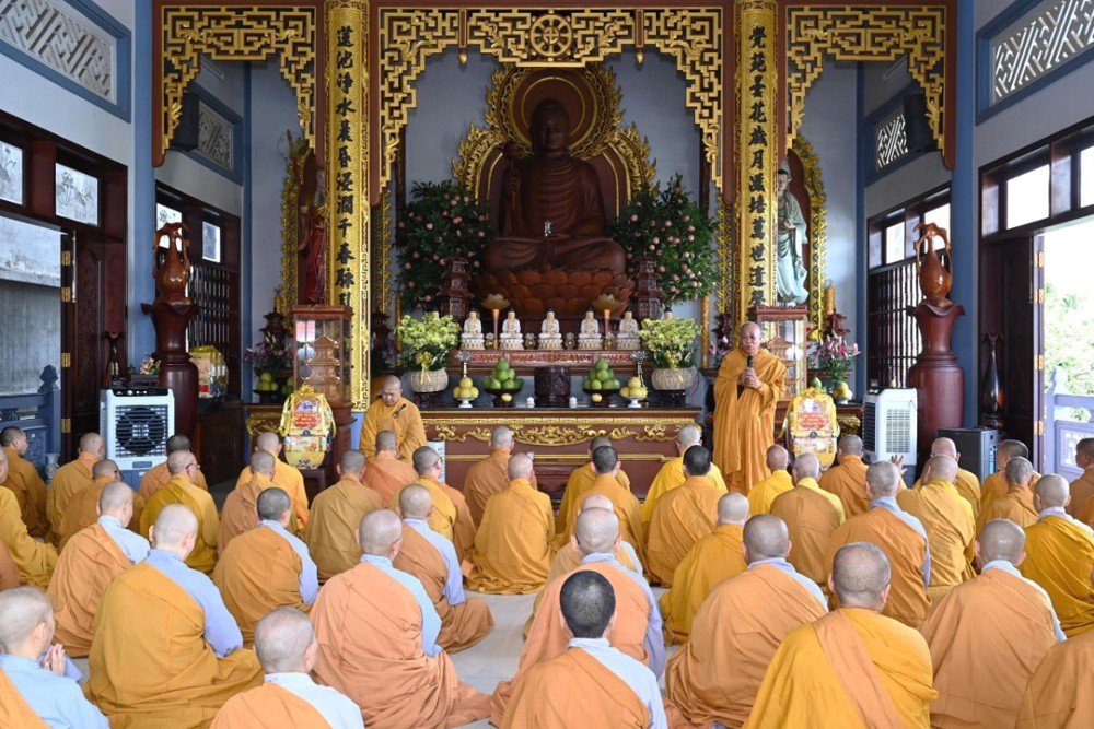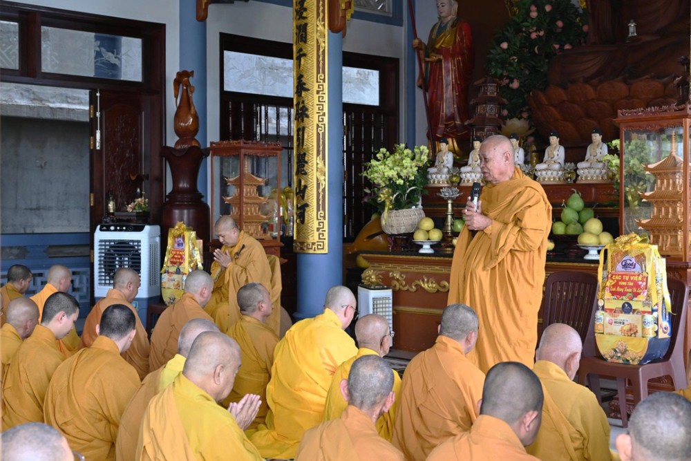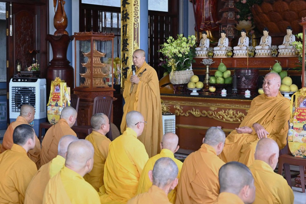 Đáp lời, chư vị Hòa thượng chứng minh đã tán thán tinh thần đoàn kết và những hoạt động Phật sự tích cực của Tăng Ni, đặc biệt là trong công tác an sinh xã hội với nhiều chương trình thiện nguyện ý nghĩa, thiết thực, góp phần lan tỏa tinh thần từ bi của đạo Phật đến với cộng đồng, nhất là trong những dịp Tết đến, Xuân về. Chư tôn giáo phẩm đồng thời chúc nguyện chư Tôn đức Tăng Ni và Phật tử một năm mới bình an, hạnh phúc và nhiều thắng duyên trong năm 2026.