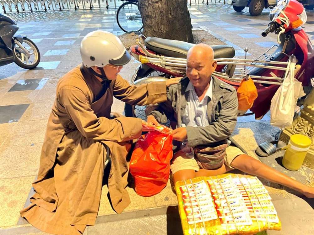Theo đó, Đại đức cùng các mạnh thường quân đã trực tiếp trao 50 phần quà Tết, mỗi phần trị giá 500.000 đồng, gồm bánh chưng, lạp xưởng, mứt, bánh kẹo, nước ngọt, hạt bí và bao lì xì chúc Xuân. Những phần quà được trao tận tay người thụ hưởng, thể hiện sự quan tâm, sẻ chia trong những ngày giáp Tết.