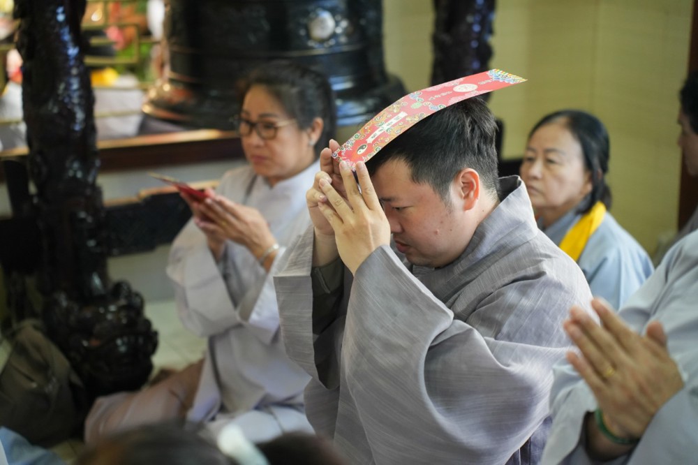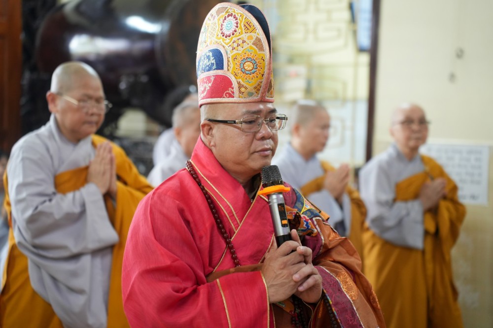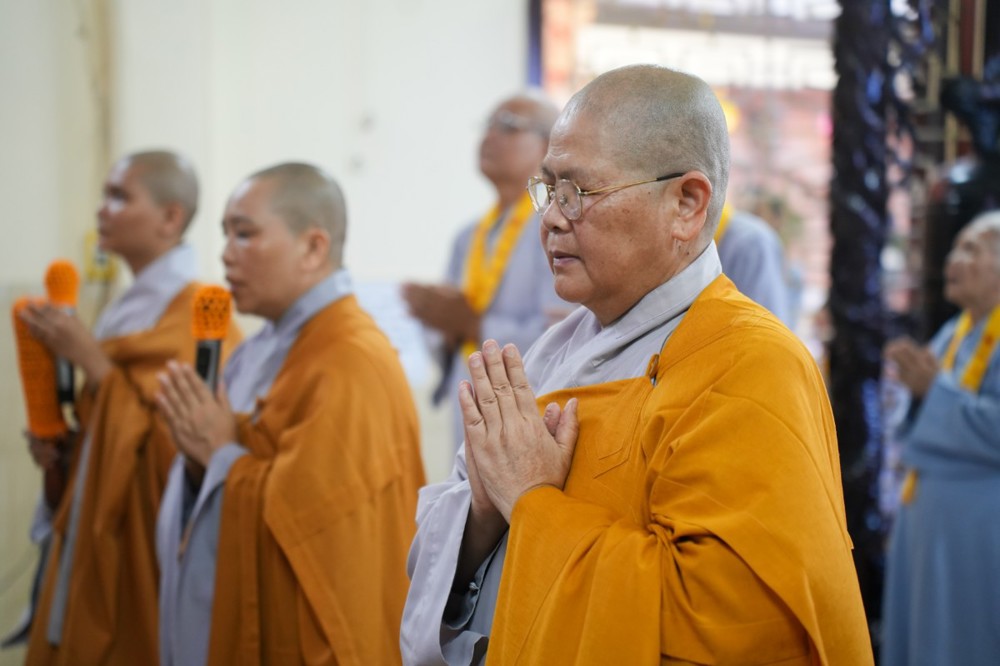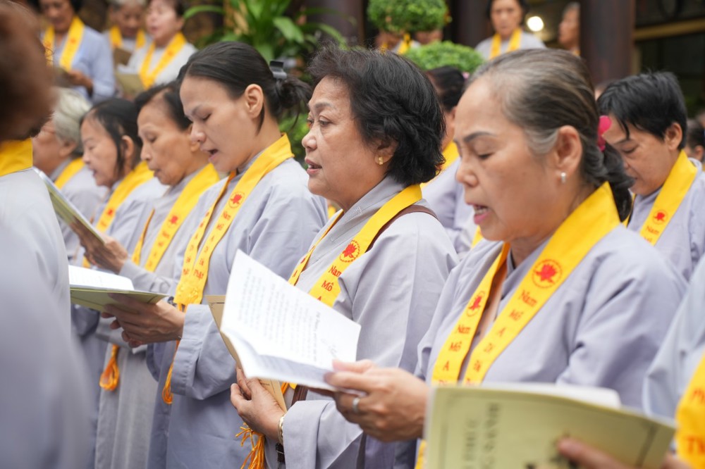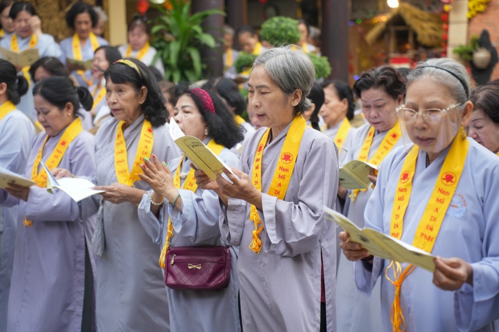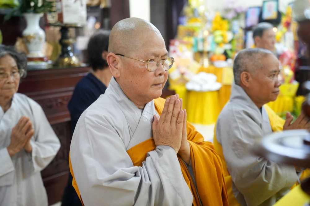Buổi chiều cùng ngày, đạo tràng trang nghiêm cử hành khóa lễ tụng kinh Dược Sư cầu quốc thái dân an, nhất tâm hồi hướng công đức đến pháp giới chúng sanh, nguyện cầu thế giới hòa bình, nhân sinh an lạc.