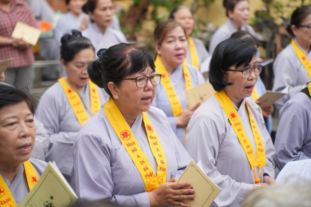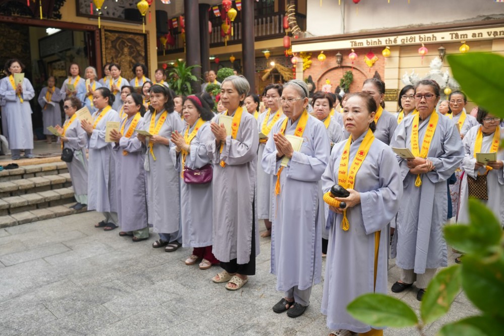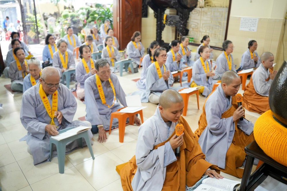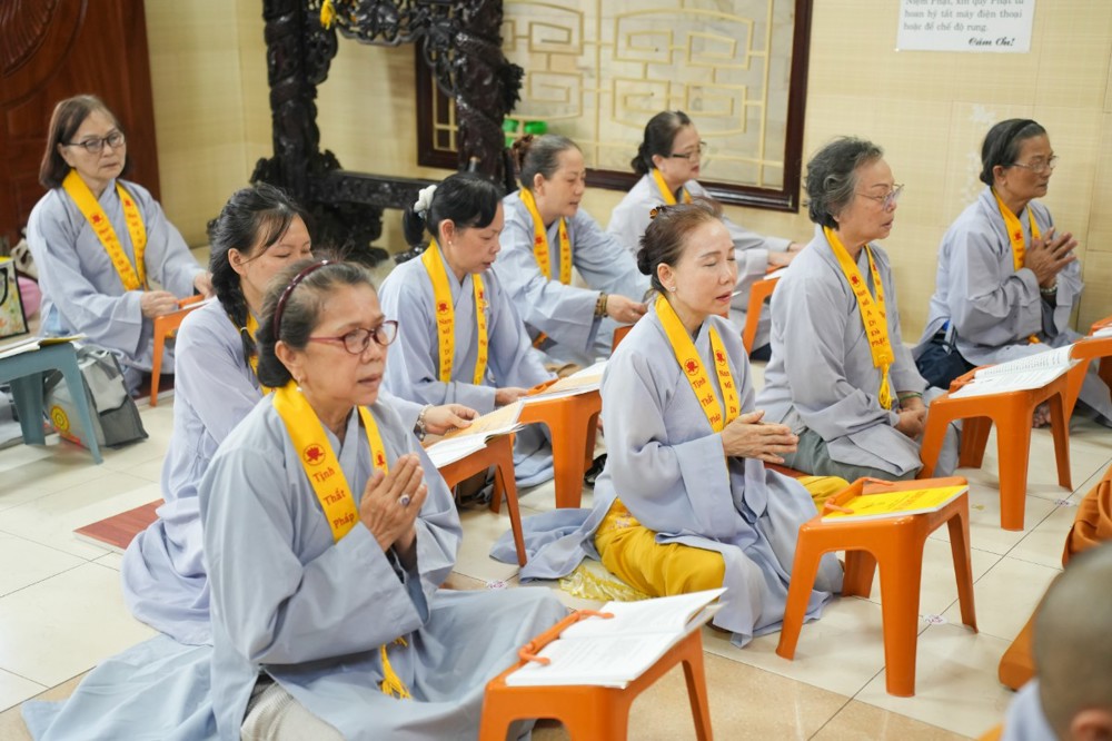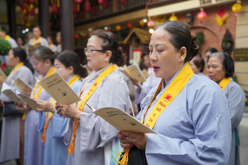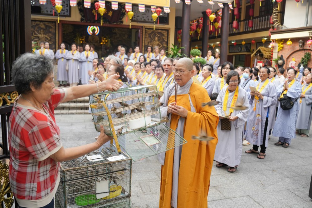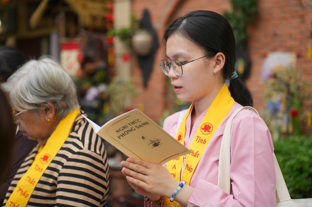 Chương trình tu học trong ngày bắt đầu từ sáng sớm với sự vân tập của đông đảo Phật tử trở về đạo tràng. Ni sư Thích An Hiếu – Quản tự Tịnh thất Pháp Thủy cùng chư Ni bổn tự sẽ hướng dẫn đại chúng trang nghiêm cử hành nghi thức phóng sanh cầu nguyện quốc thái dân an, nguyện cho thế giới hòa bình, chúng sinh an lạc. Nghi thức được cử hành trong không khí trang nghiêm, thanh tịnh, mở đầu cho một ngày tu học đầy ý nghĩa.