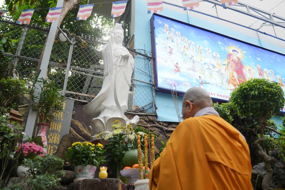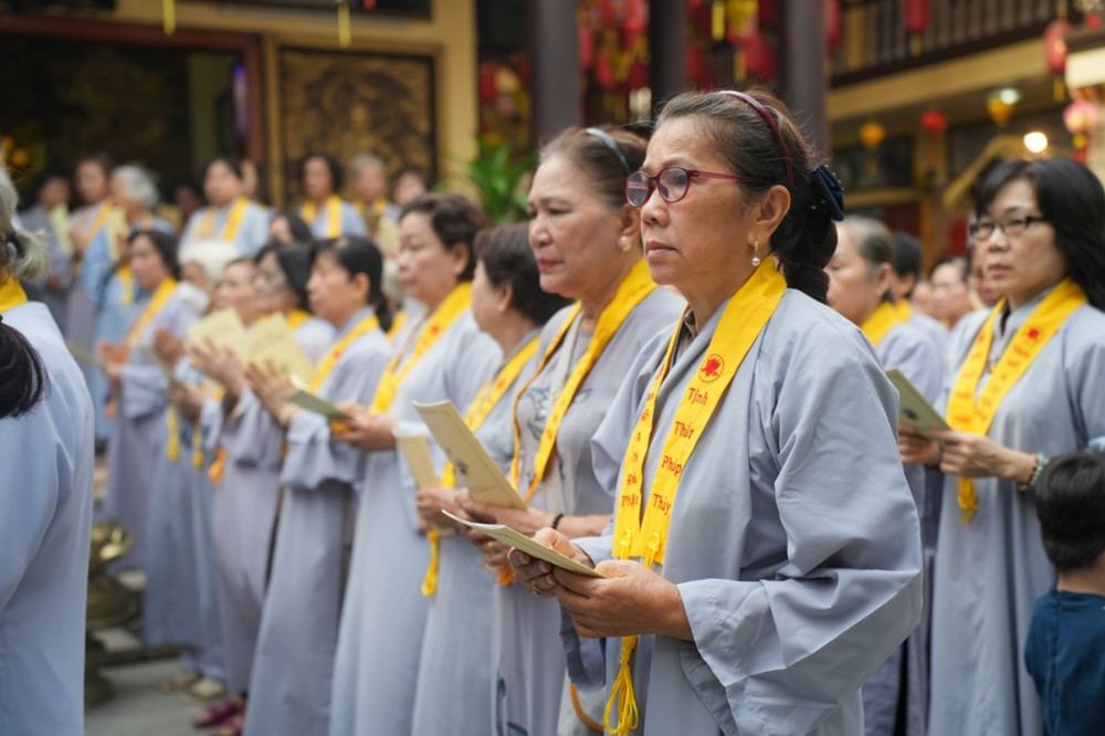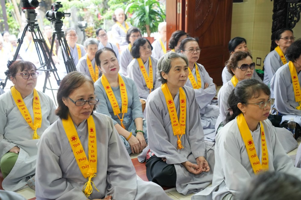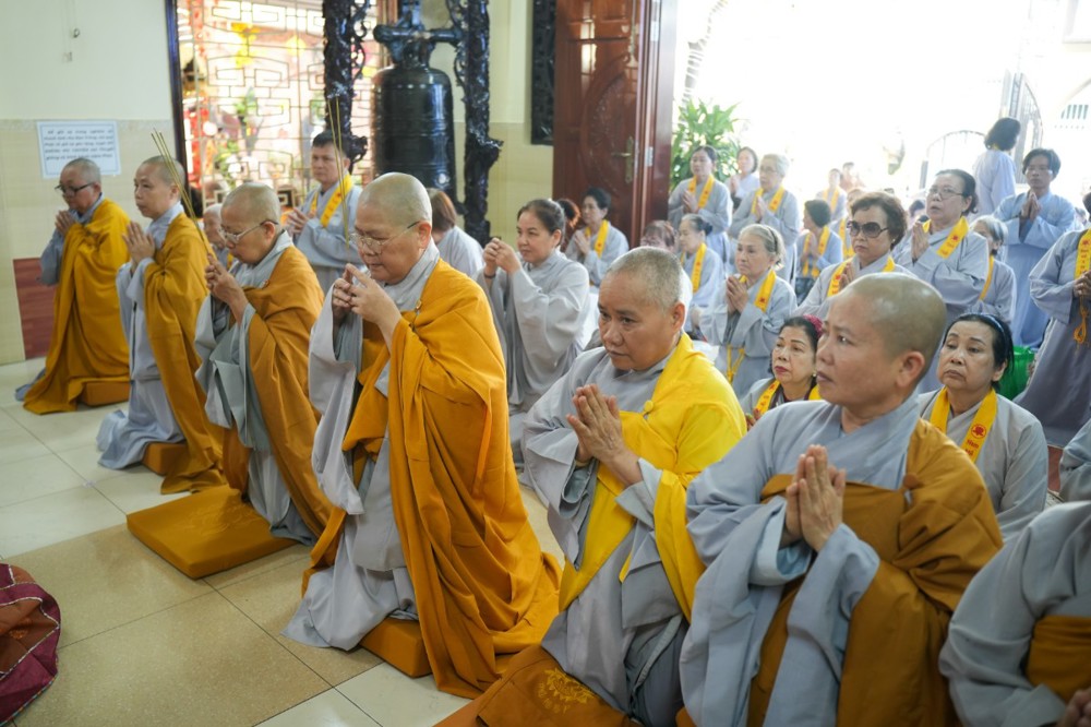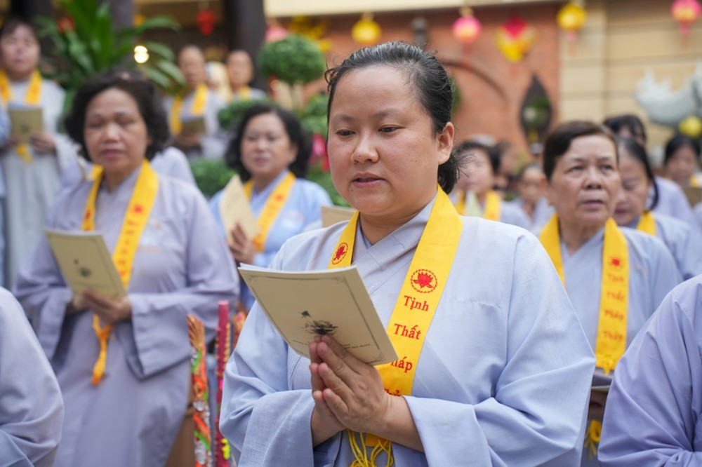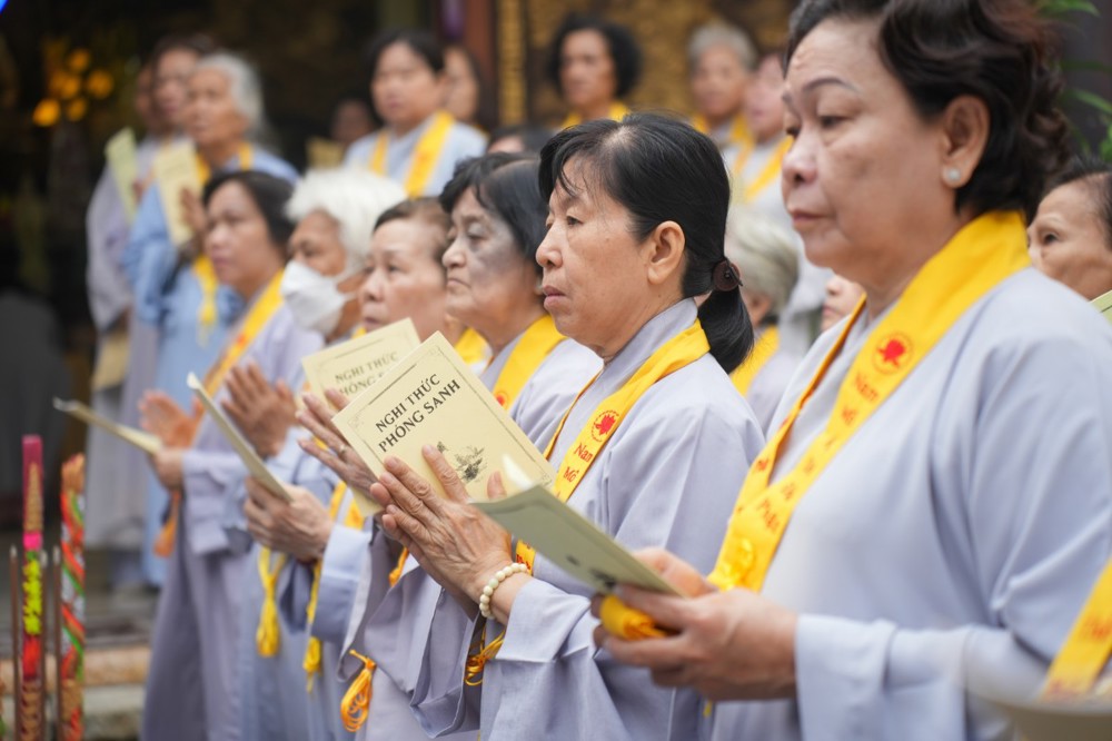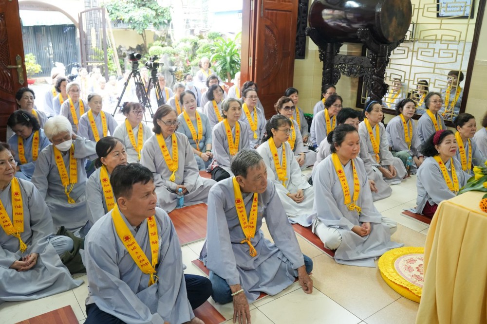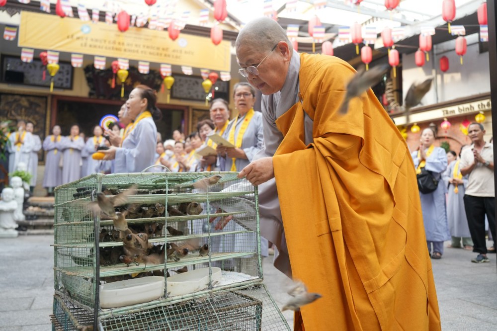 Chương trình tu học trong ngày bắt đầu từ sáng sớm với sự vân tập của đông đảo Phật tử trở về đạo tràng. Ni sư Thích An Hiếu – Quản tự Tịnh thất Pháp Thủy cùng chư Ni bổn tự sẽ hướng dẫn đại chúng trang nghiêm cử hành nghi thức phóng sanh cầu nguyện quốc thái dân an, nguyện cho thế giới hòa bình, chúng sinh an lạc. Nghi thức được cử hành trong không khí trang nghiêm, thanh tịnh, mở đầu cho một ngày tu học đầy ý nghĩa.