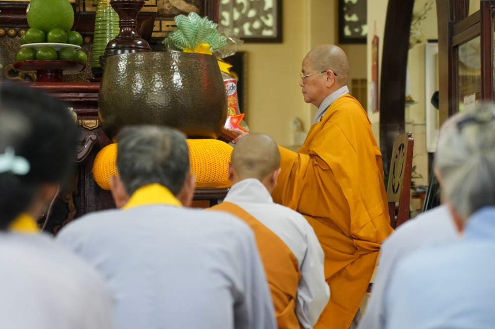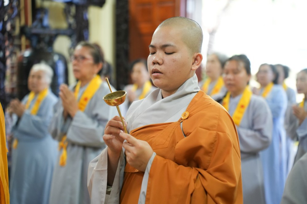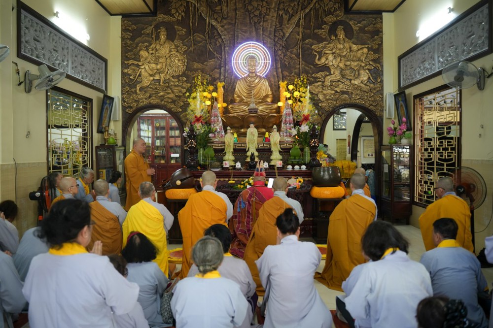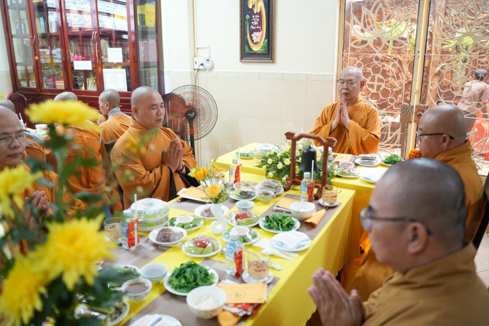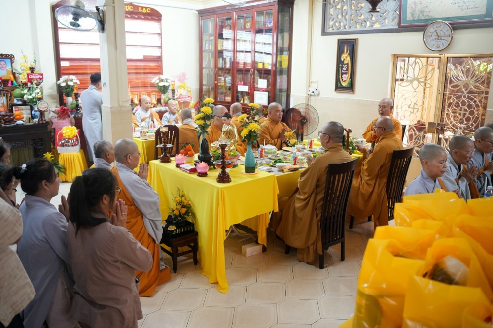 Sau thời pháp thoại, chư Tôn đức ban nghi lễ thực hiện nghi thức cúng ngọ, cung tiến chư linh theo truyền thống Phật giáo.
