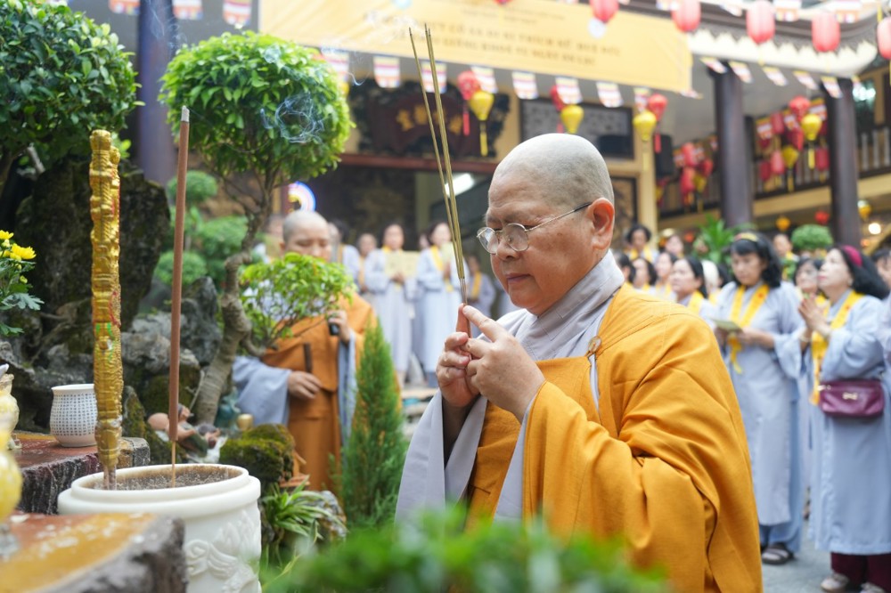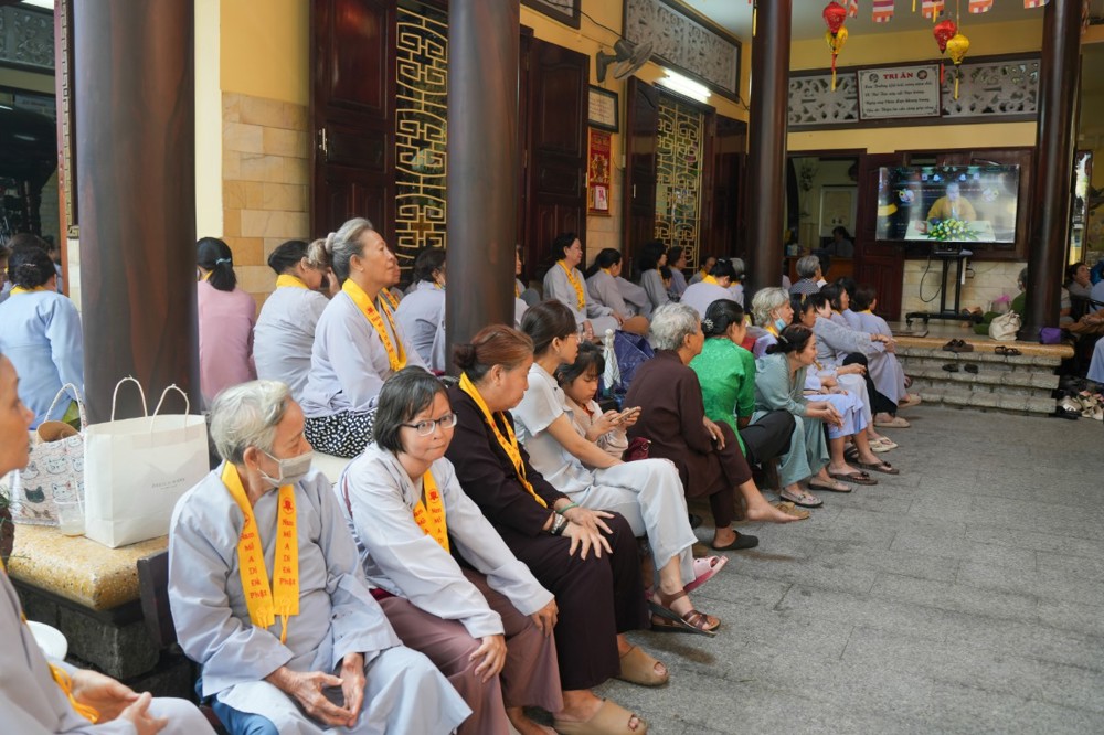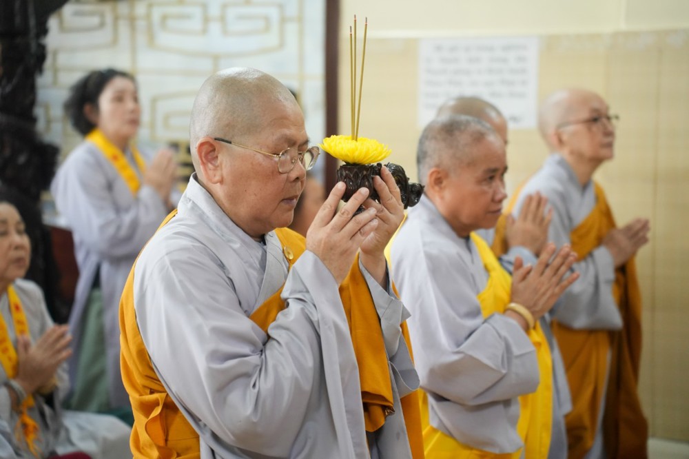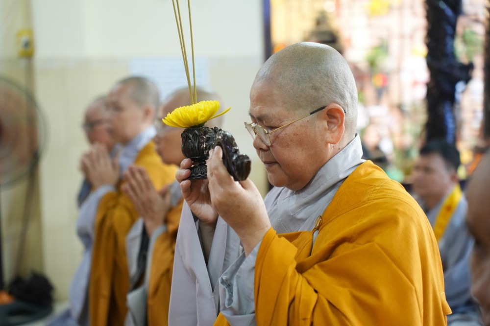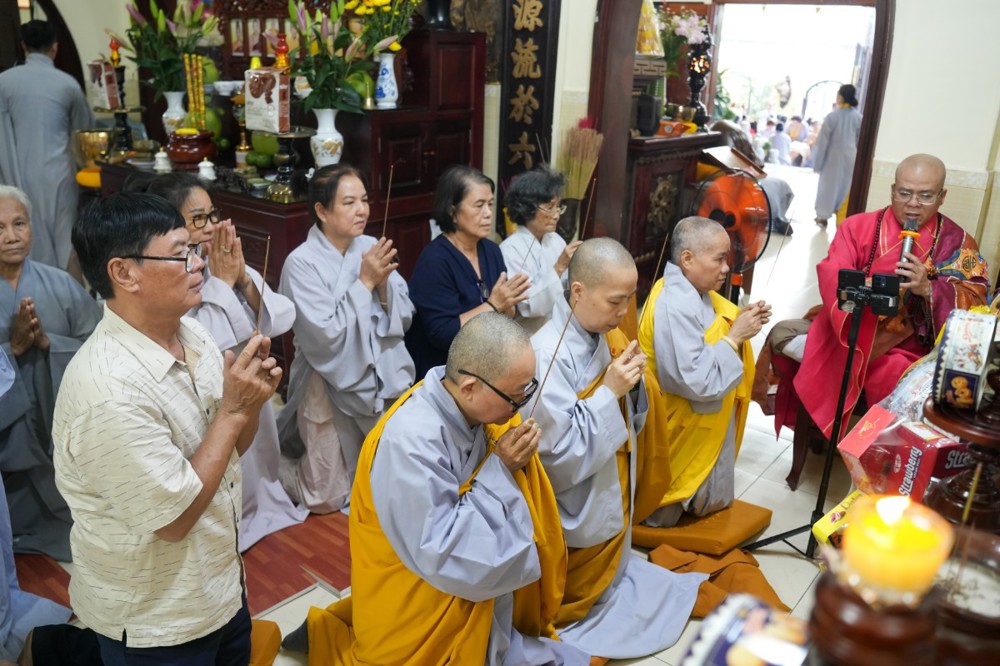 Sau thời pháp thoại, chư Tôn đức ban nghi lễ thực hiện nghi thức cúng ngọ, cung tiến chư linh theo truyền thống Phật giáo.