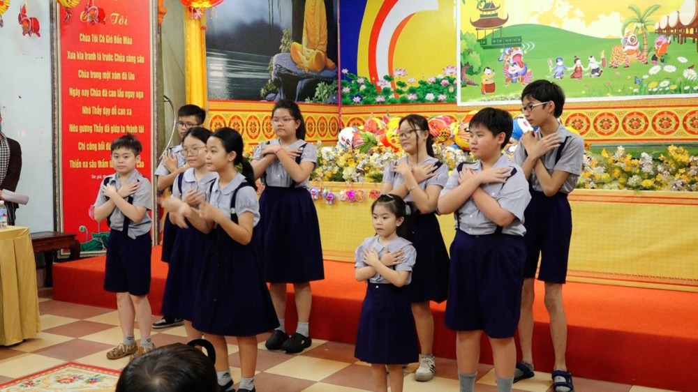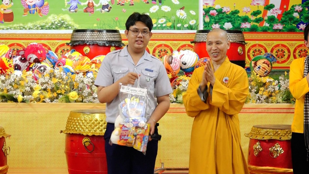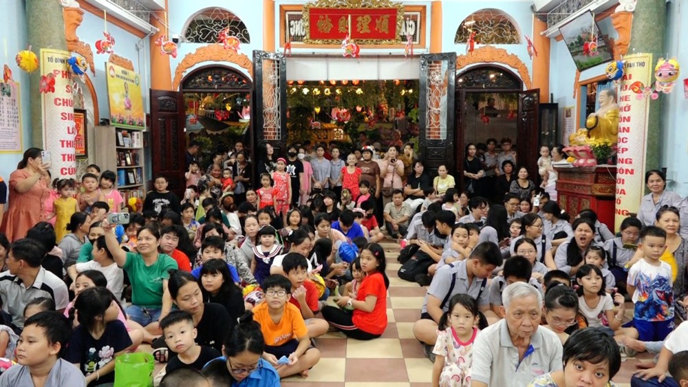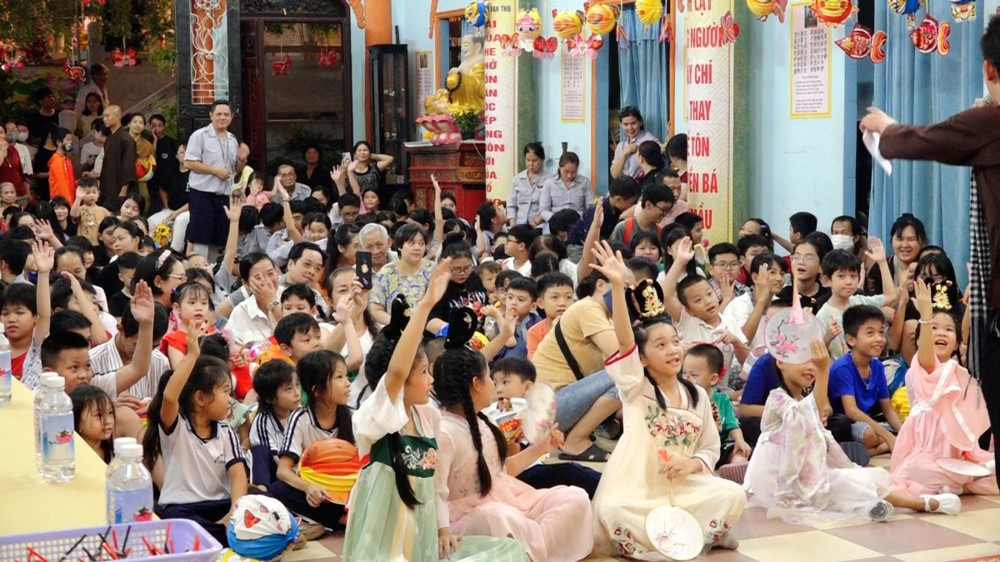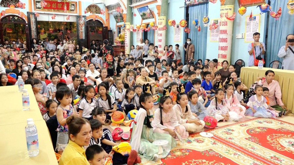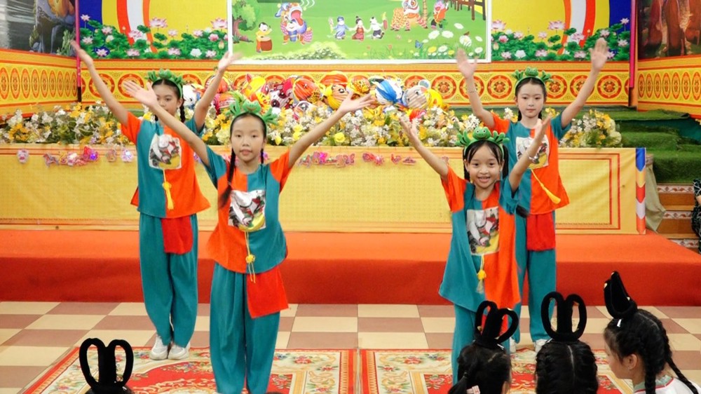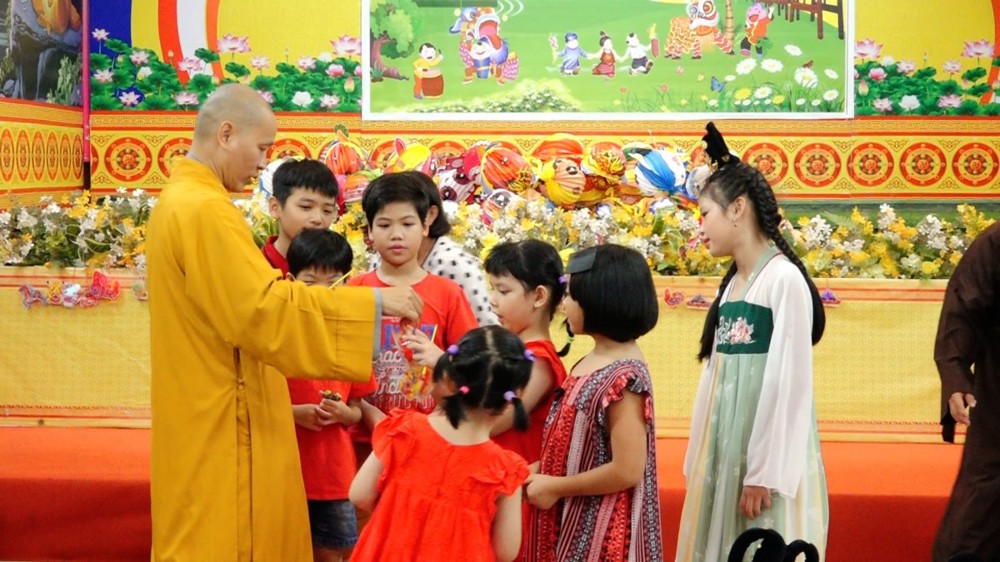 Được đón lễ hội Trung thu ấm áp bên người thân, bạn hiền, quý Thầy, dưới ba ngôi Tam bảo Vạn Thọ, niềm vui sướng đã rõ ràng trên gương mặt các em.