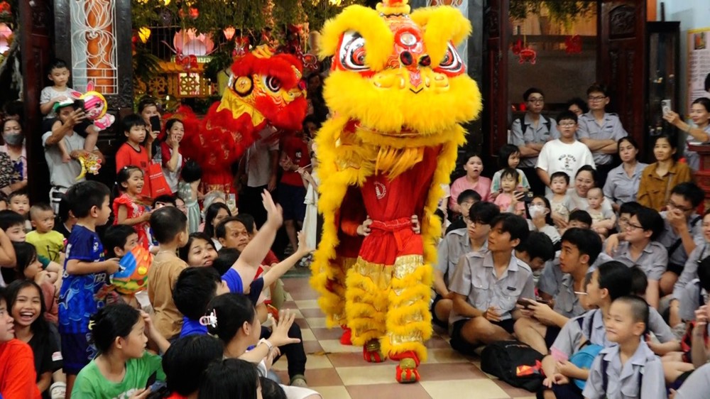 Tại đây, các tiết mục ảo thuật, các hoạt cảnh và các phần trình diễn múa lân, múa rồng cũng được trình bày, tô đậm thêm niềm vui cho trẻ thơ nhân ngày trăng đoàn viên năm 2025.