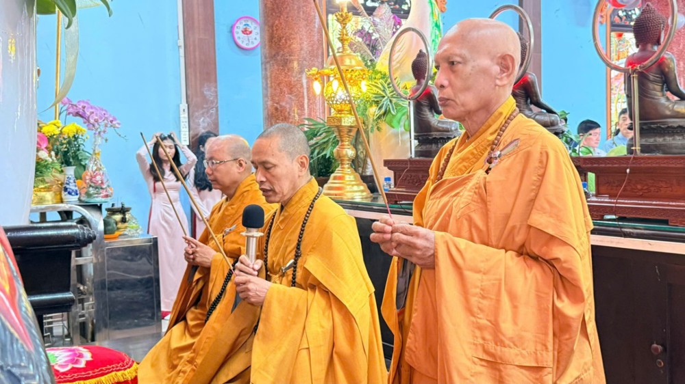 Buổi lễ được cử hành dưới sự chứng minh của Thượng tọa Thích Minh Quang – Ủy viên Ban Trị sự GHPGVN TP.HCM, Trụ trì Tổ đình chùa Vạn Thọ; Thượng tọa Thích Đức Nguyên – Trụ trì chùa Báo Ân (TP.HCM); cùng chư Tôn đức Tăng Ni Tổ đình chùa Vạn Thọ và sự hiện diện đông đủ của hai bên gia đình, thân quyến, thiện nam tín nữ gần xa.