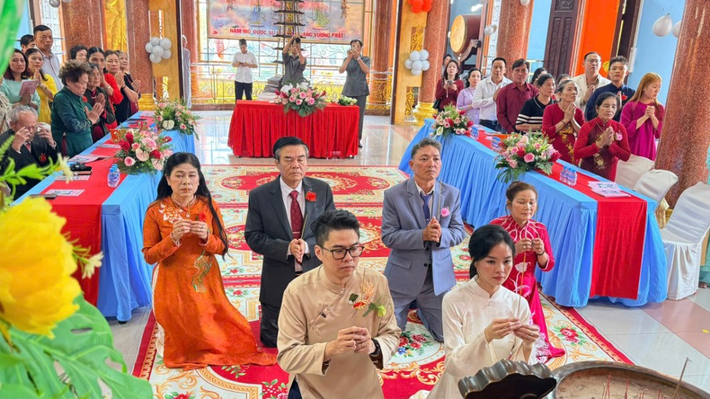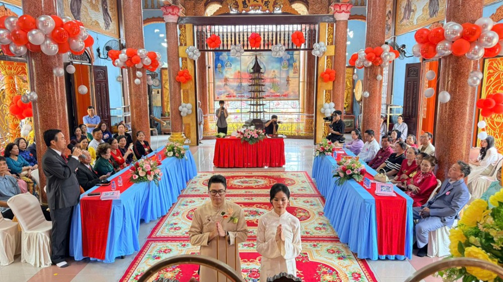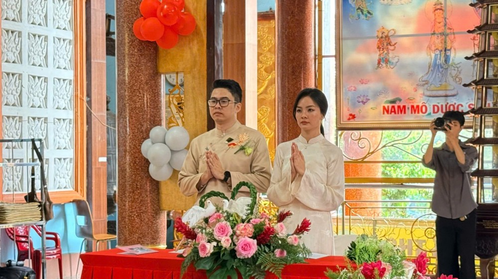 Trong không khí thanh tịnh của đạo tràng, đôi tân duyên đã thành kính đảnh lễ Tam Bảo, phát nguyện sống đời vợ chồng chung thủy, yêu thương, tôn trọng và nâng đỡ lẫn nhau; biết hài hòa giữa đời sống đạo đức và trách nhiệm thế tục, góp phần xây dựng gia đình hạnh phúc, xã hội an vui.