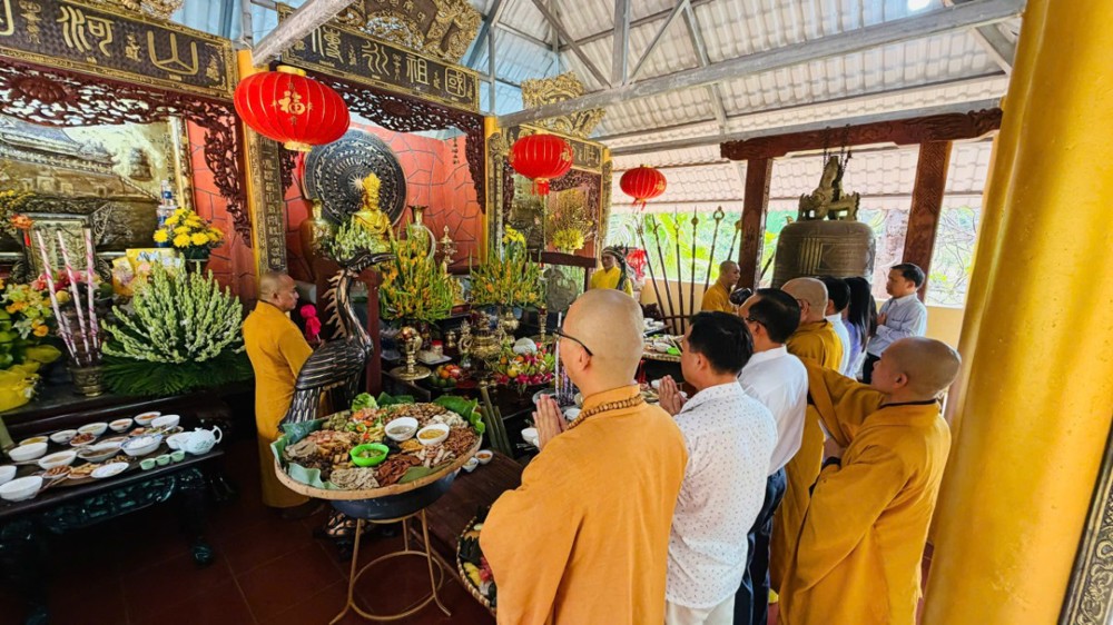 Trong không gian thanh tịnh, các nghi thức truyền thống được thực hiện trang nghiêm, thể hiện sâu sắc đạo lý “uống nước nhớ nguồn”, gắn kết tinh thần hộ quốc an dân của Phật giáo với truyền thống yêu nước của dân tộc.