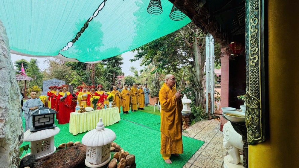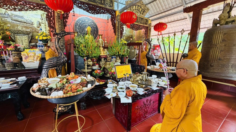 Tại chính điện, nghi thức dâng lễ phẩm được cử hành với lòng thành kính, gửi gắm tâm nguyện cầu quốc thái dân an, chúng sinh an lạc. Dịp này, Thượng tọa trụ trì cũng ban đạo từ, sách tấn Phật tử tinh tấn tu học, sống tốt đời đẹp đạo, góp phần xây dựng xã hội ngày càng văn minh, nghĩa tình.