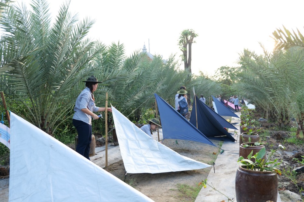 Chương trình được mở đầu bằng phần thi cắm trại. Tại đây, các trại sinh đã thể hiện tinh thần sinh hoạt tập thể, kỹ năng tổ chức, tính kỷ luật và sự phối hợp hài hòa giữa các ngành. Dưới sự hướng dẫn tận tâm của quý Huynh trưởng, từng công đoạn dựng trại được thực hiện nghiêm túc, đúng kỹ thuật, qua đó thể hiện rõ nét tinh thần lục hòa, ý thức trách nhiệm và sự gắn kết bền chặt trong sinh hoạt Gia đình Phật tử.