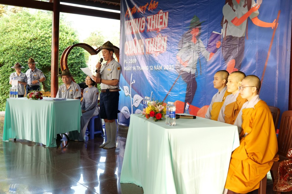 Trong buổi lễ, đại diện chư Ni Tu viện Long Hưng đã có lời tán dương tinh thần trách nhiệm, sự tận tâm và nỗ lực không ngừng của quý Huynh trưởng – những người âm thầm đồng hành, dìu dắt và nuôi dưỡng thế hệ Phật tử trẻ. Đồng thời, chư Ni gửi lời chúc đến các em trại sinh luôn giữ vững chánh niệm, bình tĩnh, tự tin khi tham dự kỳ thi; tiếp tục tinh tấn tu học, nuôi dưỡng lý tưởng phụng sự Tam Bảo và phát triển các hoạt động sinh hoạt lành mạnh của Gia đình Phật tử trong thời gian tới.