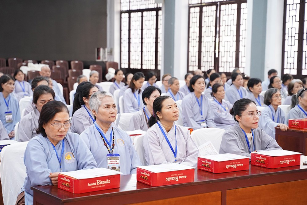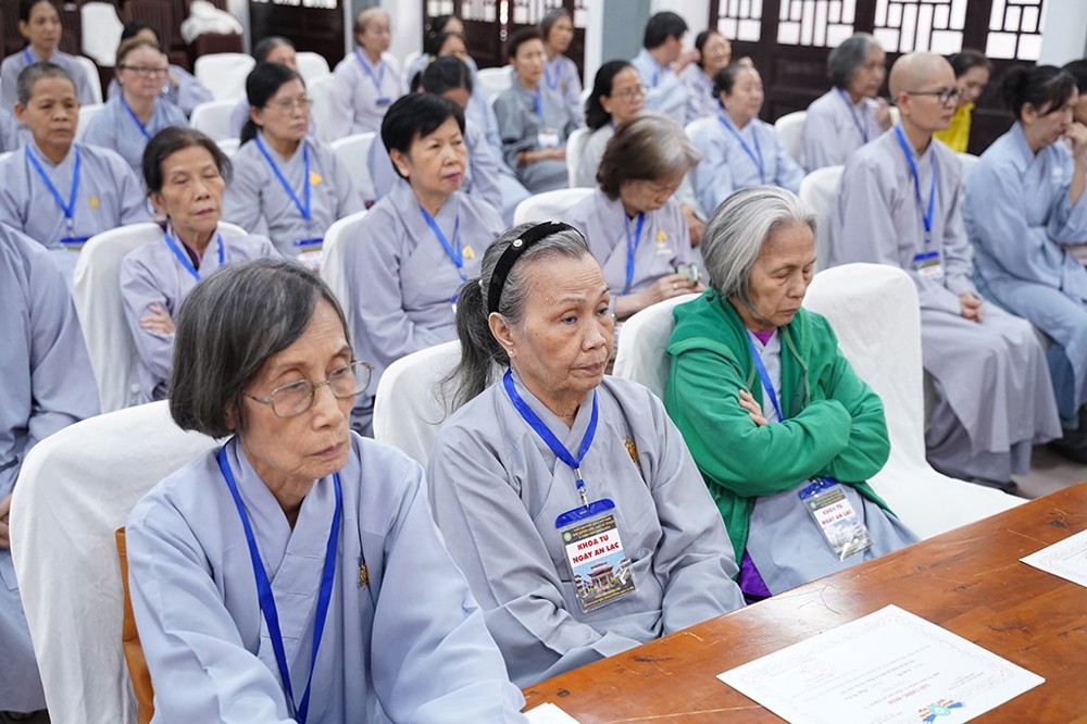 Theo báo cáo, trong hai năm qua, Khóa tu Ngày An Lạc đã được tổ chức định kỳ với 17 khóa tu, thu hút đông đảo Phật tử tham gia trực tiếp và trực tuyến. Nội dung tu học được xây dựng hài hòa giữa nghe pháp, tụng kinh, hành trì và sinh hoạt Phật pháp, giúp Phật tử an trú thân tâm, nuôi dưỡng chánh niệm và từng bước ứng dụng lời Phật dạy vào đời sống hằng ngày.