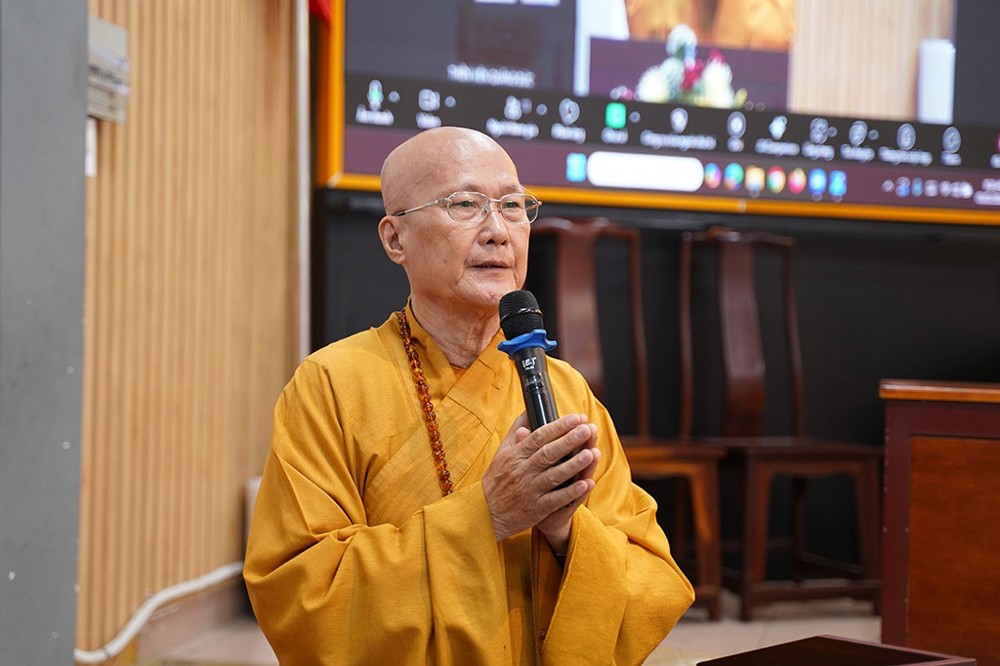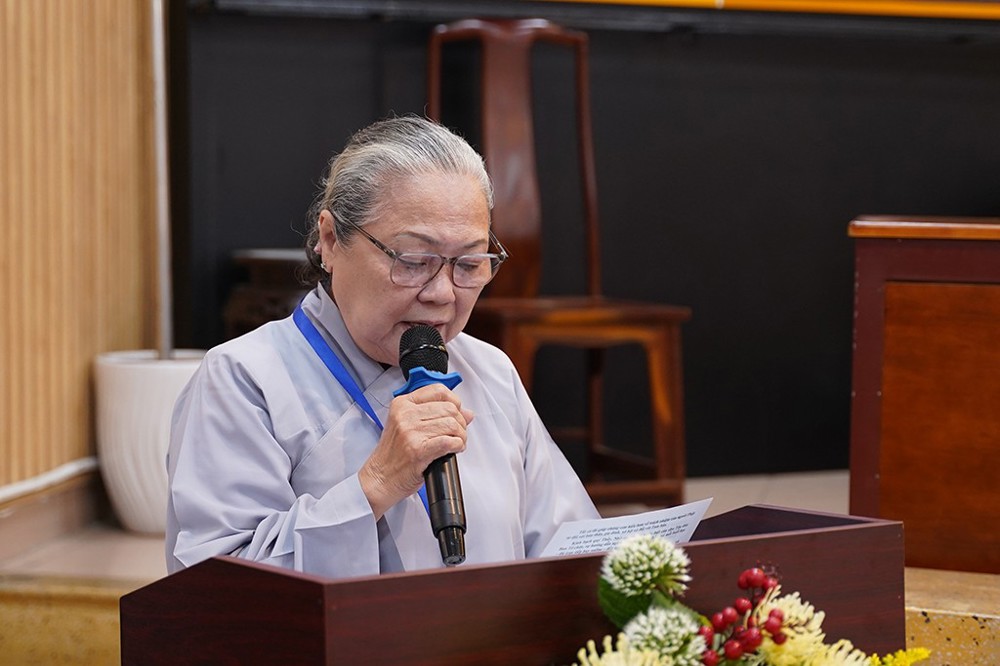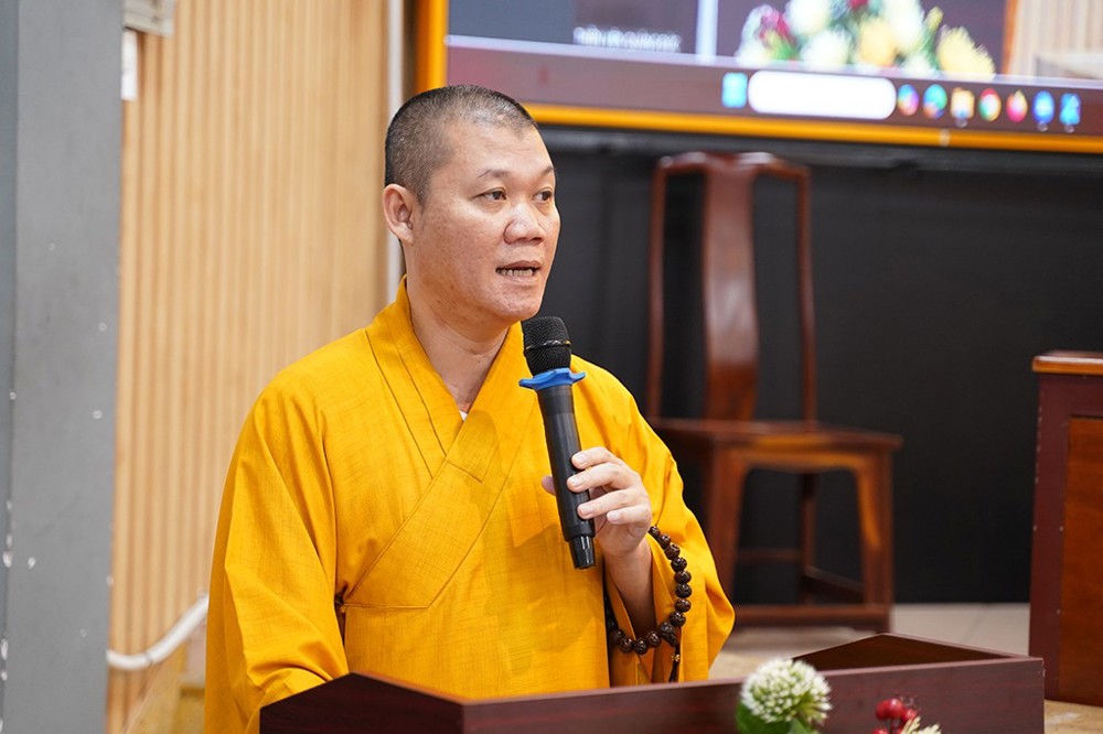 Tiếp đó, Thượng tọa Thích Minh Duyên đã trình bày báo cáo tổng kết hai chương trình tu học.