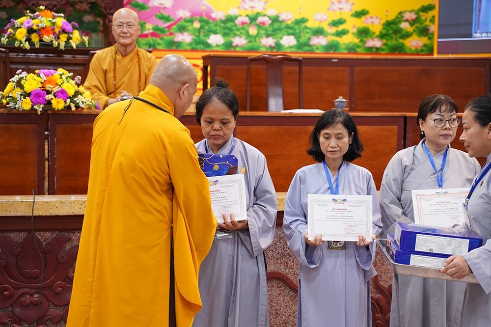 Dịp này, Ban Tổ chức đã trao chứng nhận và bằng công đức đến quý Phật tử đã tinh tấn tham gia tu học, phát tâm thọ trì Bồ Tát Giới, ghi nhận sự nỗ lực hành trì và hộ trì Tam Bảo của đại chúng trong suốt thời gian qua.