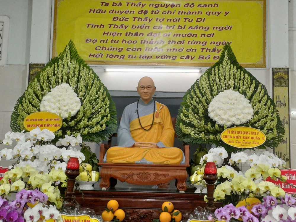 Trong không khí tri ân- báo ân, Ni trưởng Thích Nữ Hạnh Ngọc, chứng minh PBNG PG thành phố, trụ trì chùa Bồ Đề, đại diện môn đồ Pháp quyến dâng lời thành kính tưởng niệm: … Đã tám mùa thu Thầy dời gót về cõi Tây phương, hàng hậu học luôn kính nhớ lời Ân Sư chỉ dạy thuở sơ cơ: nghiêm trì giới luật, tinh tấn thiền định để tuệ đăng khởi phát. Từ đó hoàn thiện bản thân và tùy duyên giúp người thoát khổ. Kho tàng Pháp bảo- Thánh tài vô tận Thầy trao truyền đã trở thành hành trang quý báu cho hàng đệ tử trong và ngoài nước vững bước trên con đường tu tập, chúng con nguyện cùng nhau xiển dương Phật pháp, ngõ hầu báo đáp công ơn giáo dưỡng của Người.