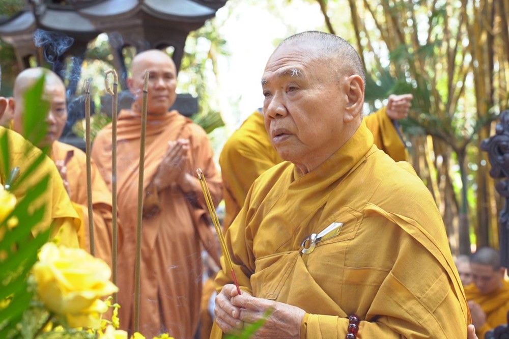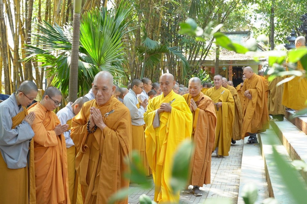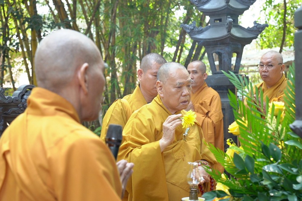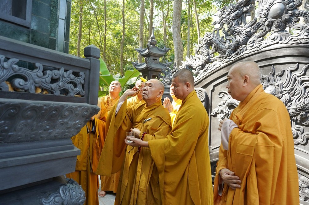 Tại Bảo tháp lưu giữ nhục thân của Ngài, chư Tôn đức đã dâng hương, sái tịnh và nhiễu tháp trong tiếng niệm Phật trầm hùng, tưởng nhớ một đời hoằng pháp và giáo dục của cố Trưởng lão Hòa thượng - vị thầy đã dìu dắt, đào tạo hàng ngàn Tăng Ni và Phật tử tu học, trưởng dưỡng đạo tâm.