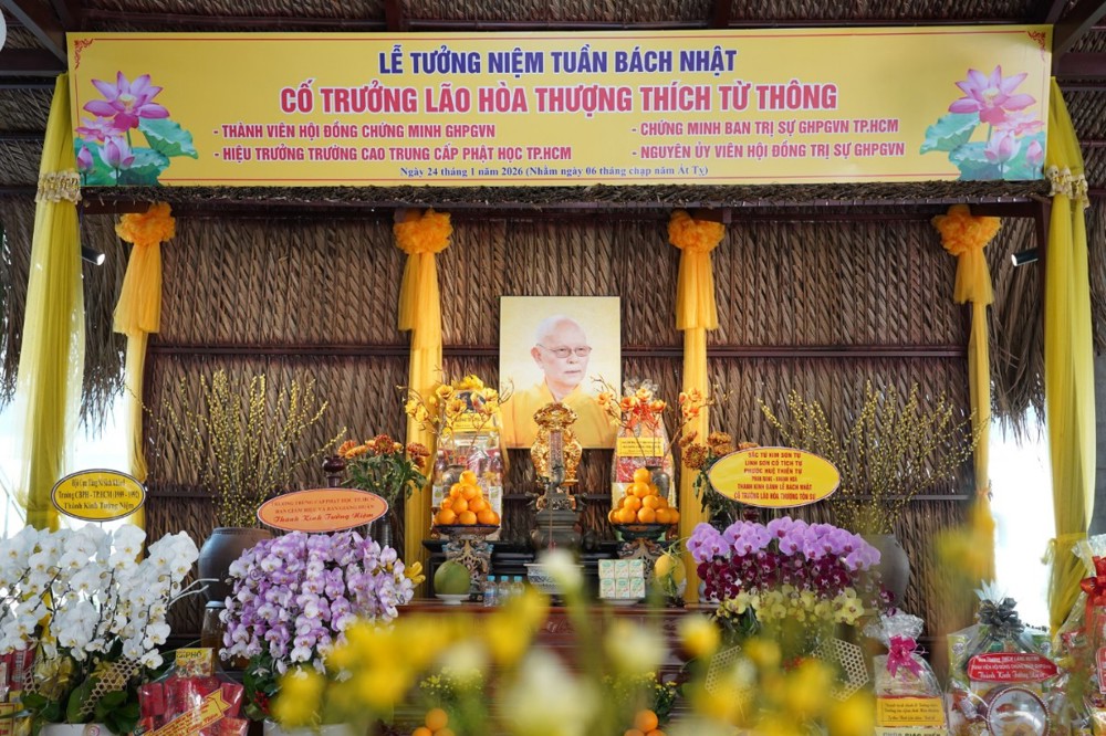 PSO - Sáng 24/1, tại chùa Thanh Sơn (TP.HCM), chư Tôn đức Ban Giám hiệu trường Trung cấp Phật học TP.HCM cùng Tăng Ni môn đồ tứ chúng đã trang nghiêm cử hành lễ tưởng niệm Tuần bách nhật cố Trưởng lão Hòa thượng Thích Từ Thông – Thành viên HĐCM, Hiệu trưởng Trường Trung cấp Phật học TP.HCM.