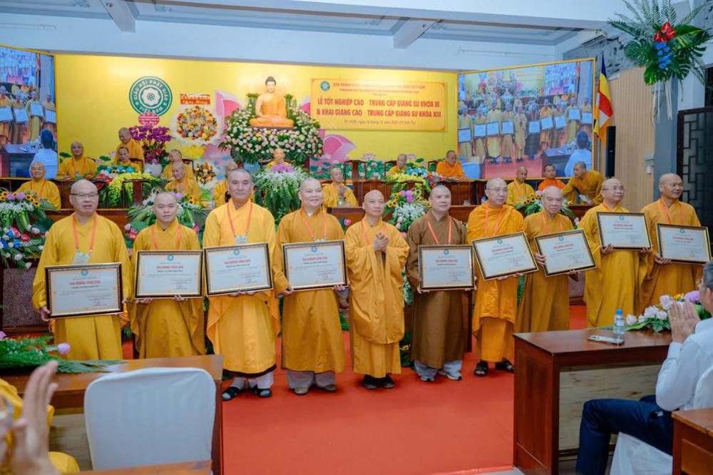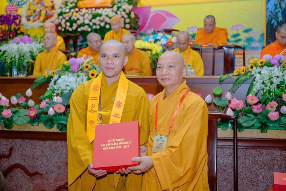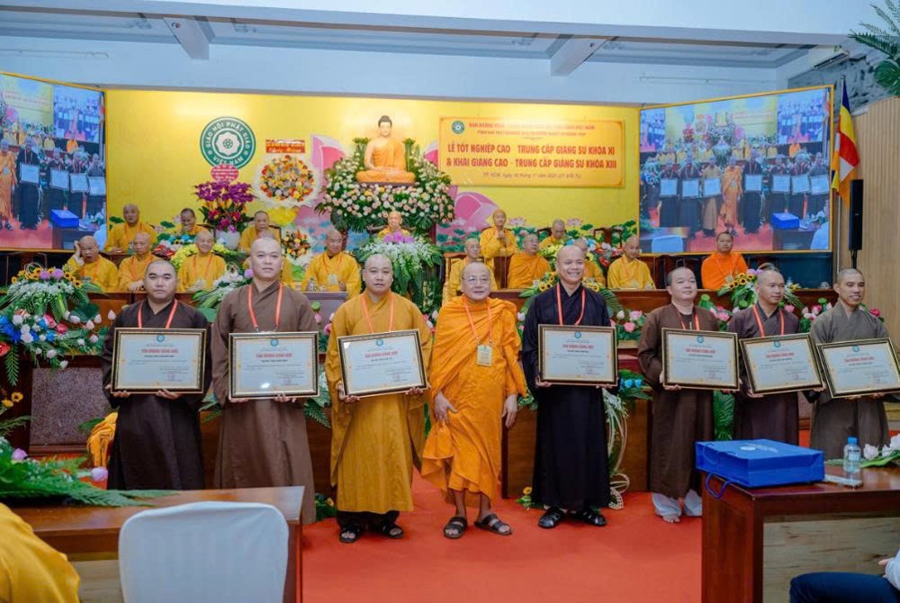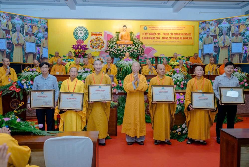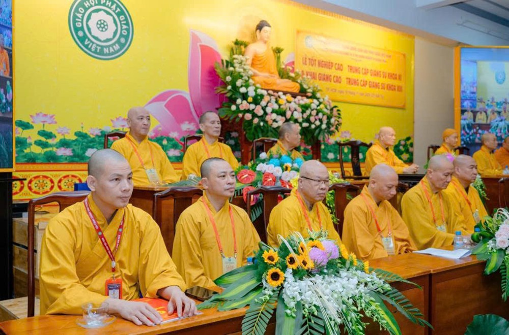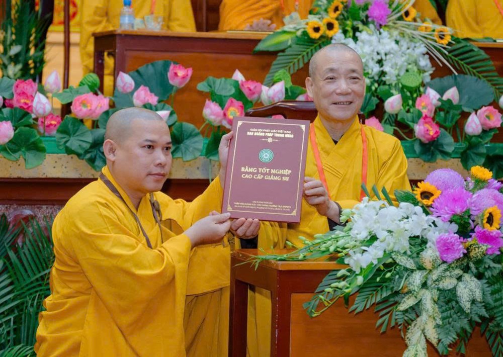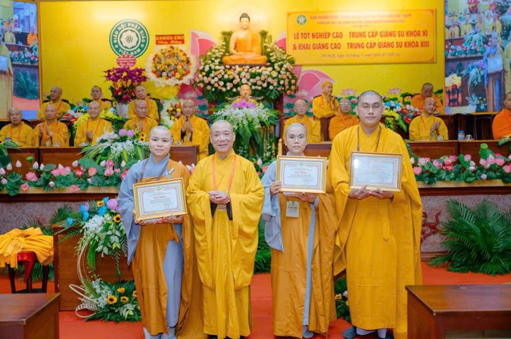 Trong không khí trang nghiêm, Hòa thượng Thích Bảo Nghiêm đã trao bằng tốt nghiệp đến các Tăng Ni giảng sinh Khóa XI, ghi nhận thành quả tu học sau ba năm rèn luyện.