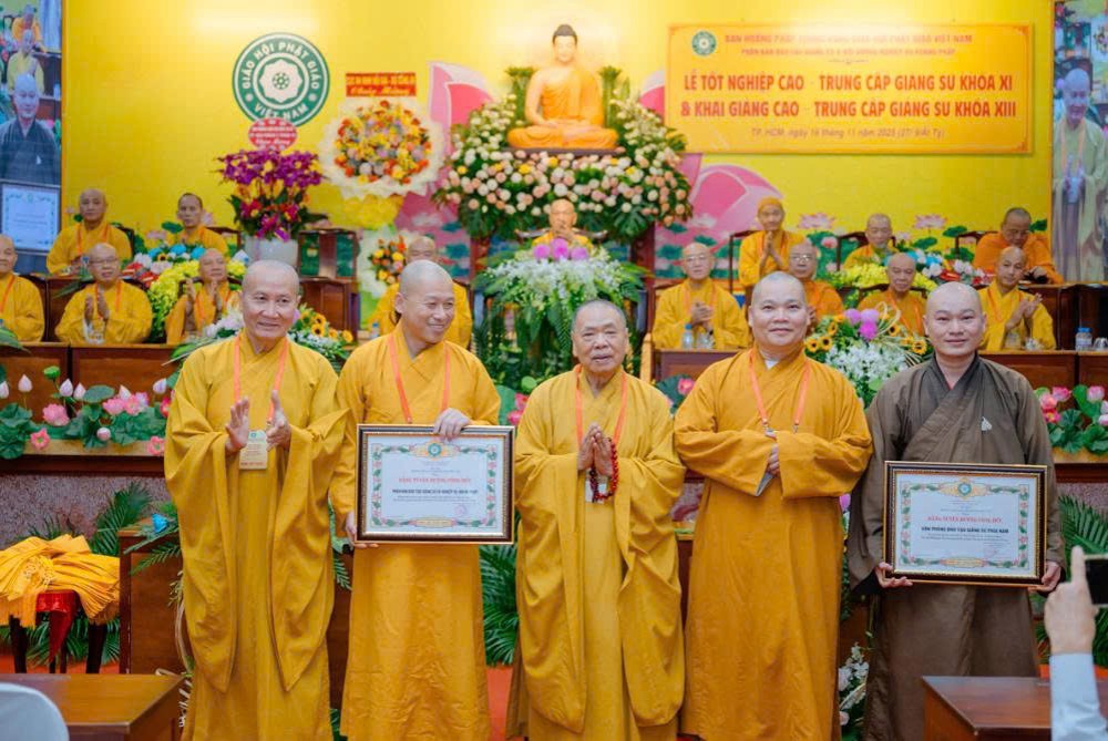 Chiều 16/11, tại Thiền viện Quảng Đức – Văn phòng 2 Trung ương (TP.HCM), Phân ban Đào tạo Giảng sư – Ban Hoằng pháp Trung ương đã trang nghiêm tổ chức Lễ Tốt nghiệp Cao – Trung cấp Giảng sư Khóa XI (2020–2023) và Khai giảng Khóa XIII (2024–2027).