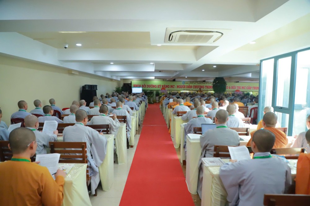 Về kỹ năng căn bản, Thượng tọa giới thiệu các yếu tố cốt lõi như: tiếng nói sân khấu, phong cách và tác phong khi xuất hiện trước công chúng, khả năng diễn cảm, biên soạn lời dẫn ngắn gọn – đúng trọng tâm, cùng tinh thần phối hợp hài hòa khi dẫn đôi hoặc dẫn nhóm. Những kỹ năng này, theo Thượng tọa, cần được rèn luyện đều đặn để hình thành sự tự tin và tính chuyên nghiệp.