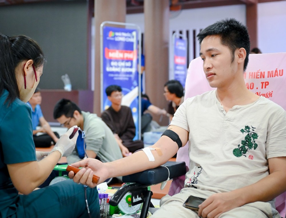 PSO - Sáng ngày 21/12/2025, tại Pháp đường Thấy và Biết, tu viện Khánh An (phường An Phú Đông, TP.HCM) đã phối hợp cùng Trung tâm Hiến máu Nhân đạo TP.HCM và Nhà thuốc Long Châu tổ chức chương trình hiến máu nhân đạo và đo khám sức khỏe miễn phí với sự tham gia gần 200 quý Phật tử và người dân địa phương.