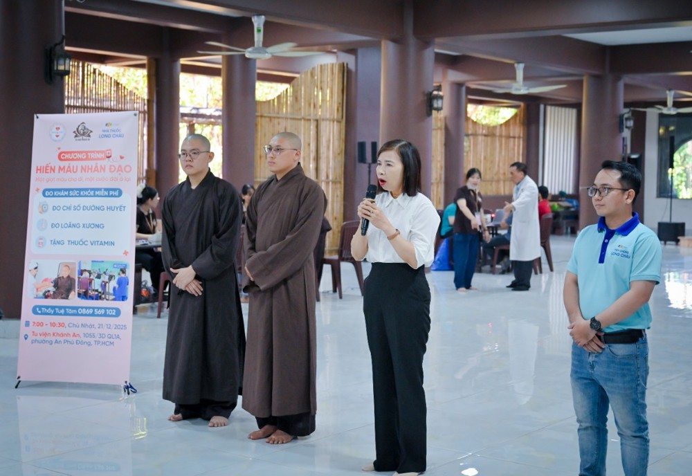 Trước khi chương trình hiến máu chính thức diễn ra, Bác sĩ Trần Thị Thắm - Tổng Giám đốc Trung tâm Hiến máu Nhân đạo TP.HCM, đại diện đơn vị phối hợp, đã gửi lời tri ân sâu sắc đến chư Tôn đức Tăng Ni, quý Phật tử và các tình nguyện viên đã phát tâm tham gia, đồng thời mong muốn đồng hành của tu viện trong nhiều hoạt động thiện nguyện vì cộng đồng trong tương lai.