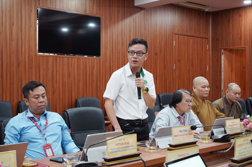 Tiếp đó, chư Tôn đức lần lượt báo cáo chi tiết về từng nội dung hoạt động Phật sự của Văn phòng, báo cáo các công tác hoạt động như: xử lý văn thư, hoạt động Phật sự trong tháng, hoạt động của các tổ công tác, và một số vấn đề liên quan của Văn phòng trong thời gian vừa qua.