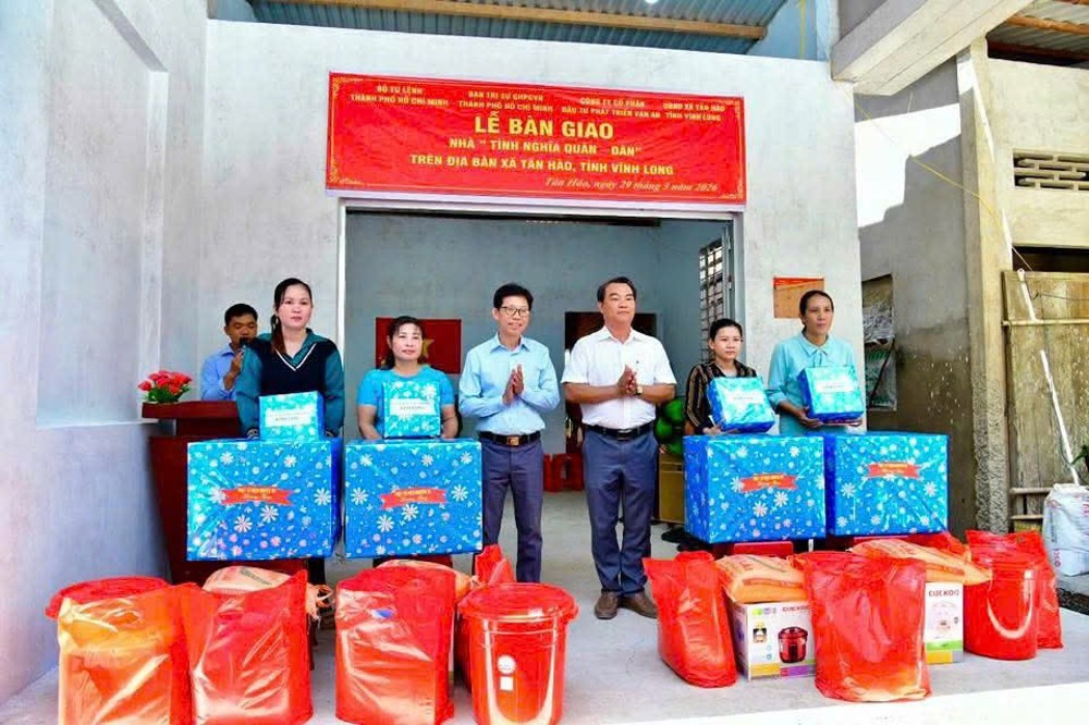 PSO – Sáng ngày 29-3, tại xã Tân Hào, tỉnh Vĩnh Long, Thượng tọa Thích Thiện Thuận – Ủy viên Hội đồng Trị sự, Phó Trưởng ban Trị sự GHPGVN TP.HCM, trụ trì chùa Viện Chuyên Tu, phối hợp cùng Bộ Tư lệnh TP.HCM đã tổ chức bàn giao 4 căn nhà “Tình nghĩa Quân – Dân”.
