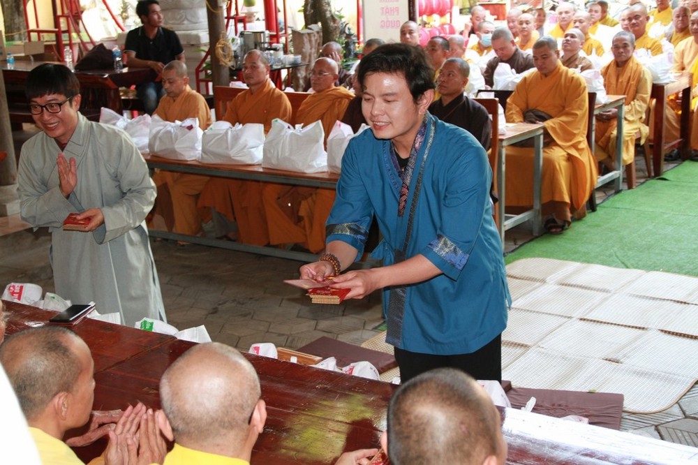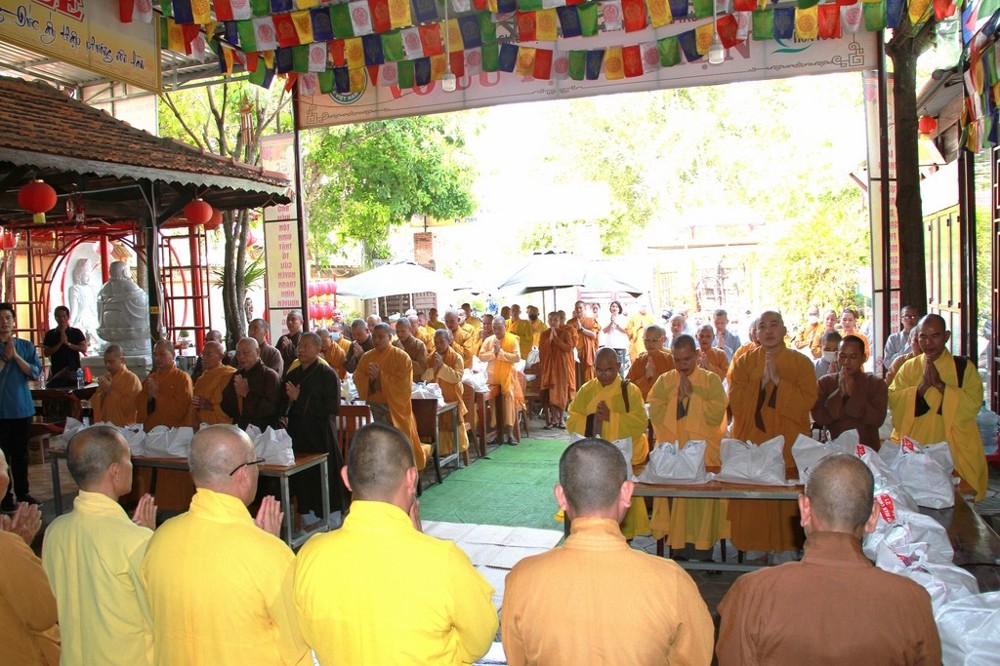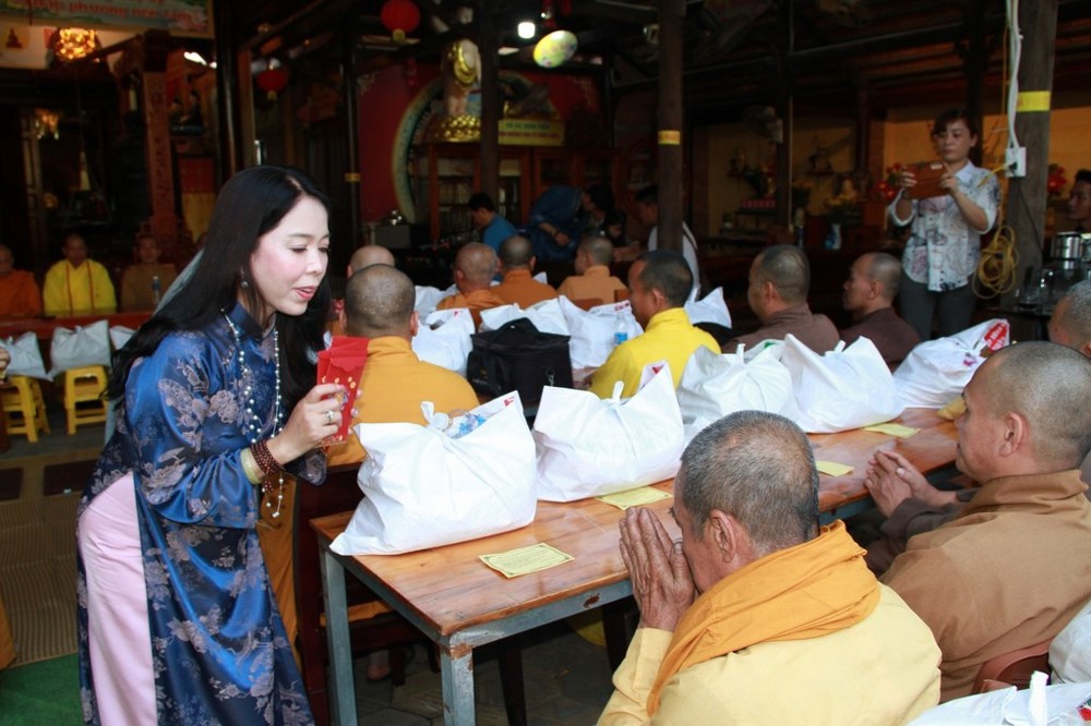 Mỗi phần quà trị giá hơn 1 triệu đồng, gồm các nhu yếu phẩm thiết yếu như gạo Đài Thơm, nếp, dầu ăn, xì dầu, bún tươi… cùng tịnh tài hỗ trợ. Đặc biệt, ca sĩ Mỹ Hạnh đã trực tiếp lựa chọn, đặt hàng, vận chuyển và tự tay đóng gói quà để dâng cúng chư Tôn đức, thể hiện lòng thành kính đối với Tam bảo. Đại diện đoàn, ca sĩ Nguyễn Đức phát biểu tác bạch: “Chúng con xin nguyện làm người hộ pháp để quý Ngài an tâm tu tập và giáo hóa hàng Phật tử.”