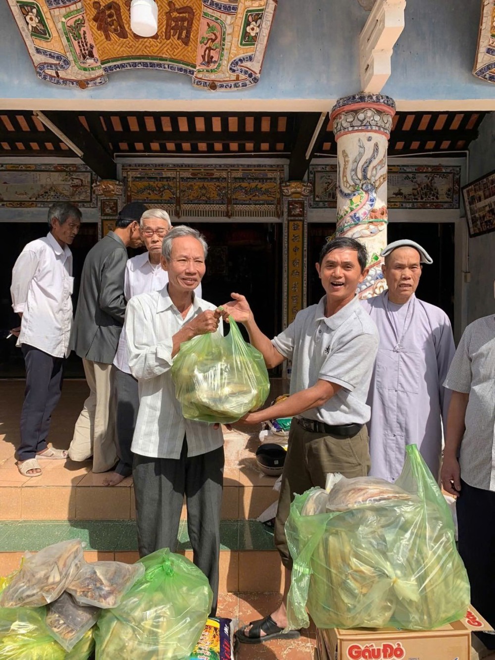 Mỗi phần quà được trao đến đại diện các hộ gia đình bao gồm: 10 kg gạo, 1 thùng mì, 2 kg cá khô. Đây là chút nghĩa tình của đạo tràng chùa Vạn Phước, người dân đất Mũi và đồng bào hải ngoại hướng về miền Trung ruột thịt, cầu mong nhà nhà an lạc, người người no ấm, sớm tái thiết để xây dựng cuộc sống an lạc.
