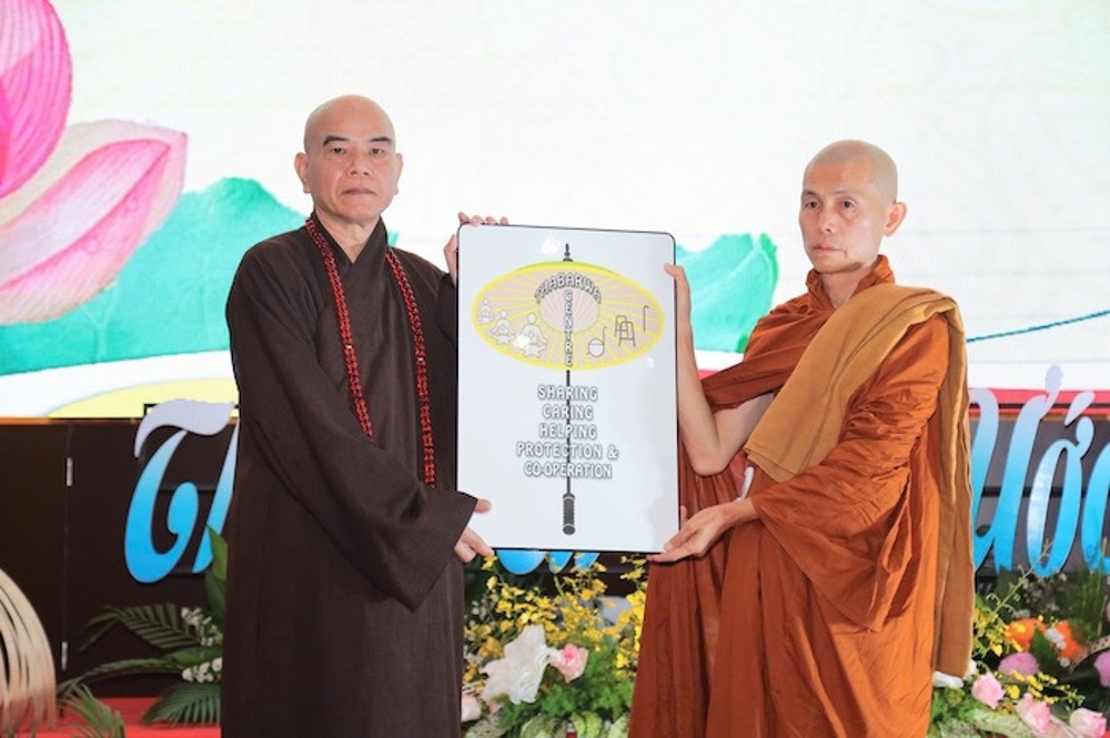 Khép lại buổi gặp gỡ, đại diện phái đoàn Phân ban Hoằng pháp Dân tộc – Ban Hoằng pháp TW GHPGVN và Trung tâm Phật học Ứng dụng Thabarwa đã trang nghiêm dâng tặng phần quà cúng dường đến Học viện Phật giáo Việt Nam tại Huế như một lời tri ân và trợ duyên cho công tác đào tạo Tăng tài. Đáp lại tấm lòng cao quý ấy, Hội đồng Điều hành Học viện cũng gửi tặng quà lưu niệm đến phái đoàn, thể hiện tình pháp lữ thâm tình và sự trân trọng đối với thiện tâm phụng sự của quý đại biểu.