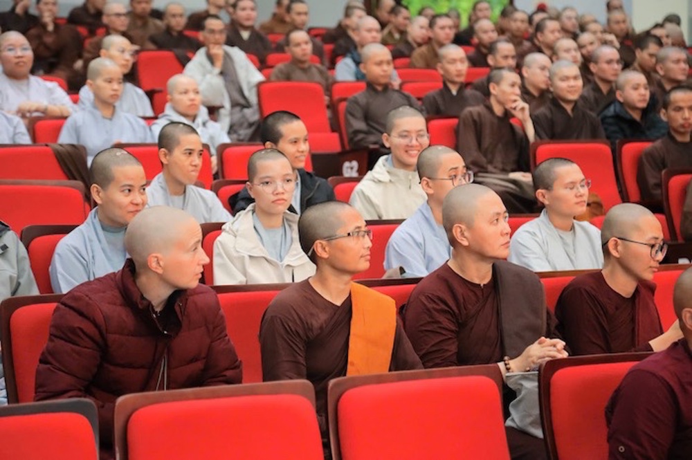 Tiếp đến, Thiền sư Ottamathara (Myanmar) đã chia sẻ đến Tăng Ni sinh, nhấn mạnh tinh thần hòa hợp trong Tăng thân, xem đây là nền tảng xây dựng một cộng đồng tu học vững mạnh, nơi mỗi người biết đoàn kết, nâng đỡ và hỗ trợ nhau trên con đường tu tập. Thiền sư cũng giới thiệu khái quát về hệ thống các trung tâm thiền Thabarwa do Ngài sáng lập và điều hành, nơi không chỉ dành cho người xuất gia mà còn mở rộng hướng dẫn cho hàng cư sĩ tại gia tu học và thực hành thiền. Thiền sư bày tỏ mong muốn trong thời gian tới sẽ phát triển thêm các trung tâm giáo dục nhằm lan tỏa rộng rãi hơn các giá trị tu học và phụng sự cộng đồng.