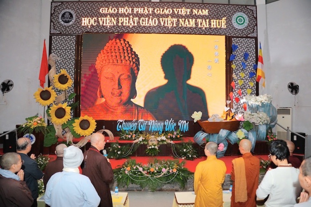 Đón tiếp phái đoàn tại Học viện có: TT.TS Thích Nguyên Thành, Ủy viên HĐTS GHPGVN, Phó Trưởng ban Giáo dục Phật giáo Trung ương, Phó Viện trưởng Thường trực kiêm Trưởng phòng Đào tạo Học viện; TT.TS Thích Quang Tư – Phó Viện trưởng kiêm Trưởng phòng Thư viện – Truyền thông; ĐĐ.TS Thích Hương Yên – Phó Viện trưởng kiêm Trưởng phòng Tổ chức Hành chính; cùng chư Tôn đức Hội đồng Điều hành Học viện PGVN tại Huế.