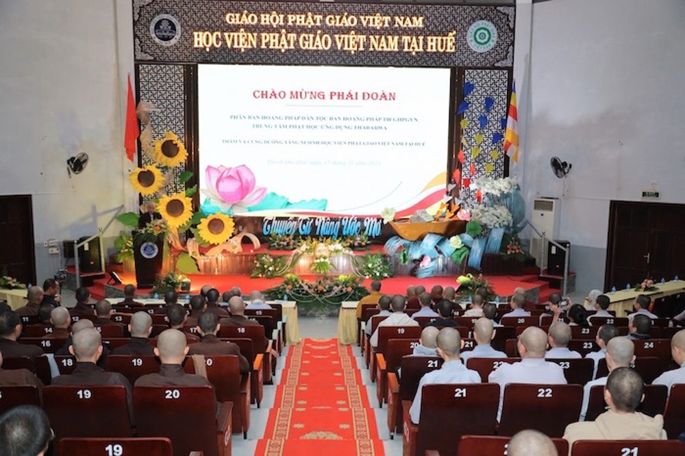 Sáng ngày 17/11/2025, phái đoàn chư Tôn đức và Phật tử Trung tâm Phật học Ứng dụng Thabarwa (Myanmar) và Phân ban Hoằng pháp Dân tộc – Ban Hoằng pháp Trung ương GHPGVN đã đến thăm chư Tôn đức Hội đồng Điều hành và thực hiện Phật sự cúng dường tại Học viện Phật giáo Việt Nam tại Huế.