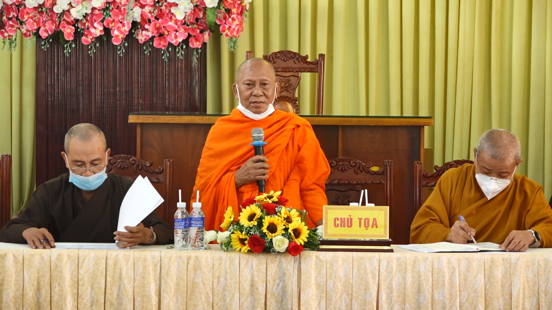 Sau phần phát biểu khai mạc của HT. Thạch Sok Xane, ĐĐ. Thích Tâm Khiết đã thay mặt bộ phận Thư ký trình bày nội dung phiên họp.