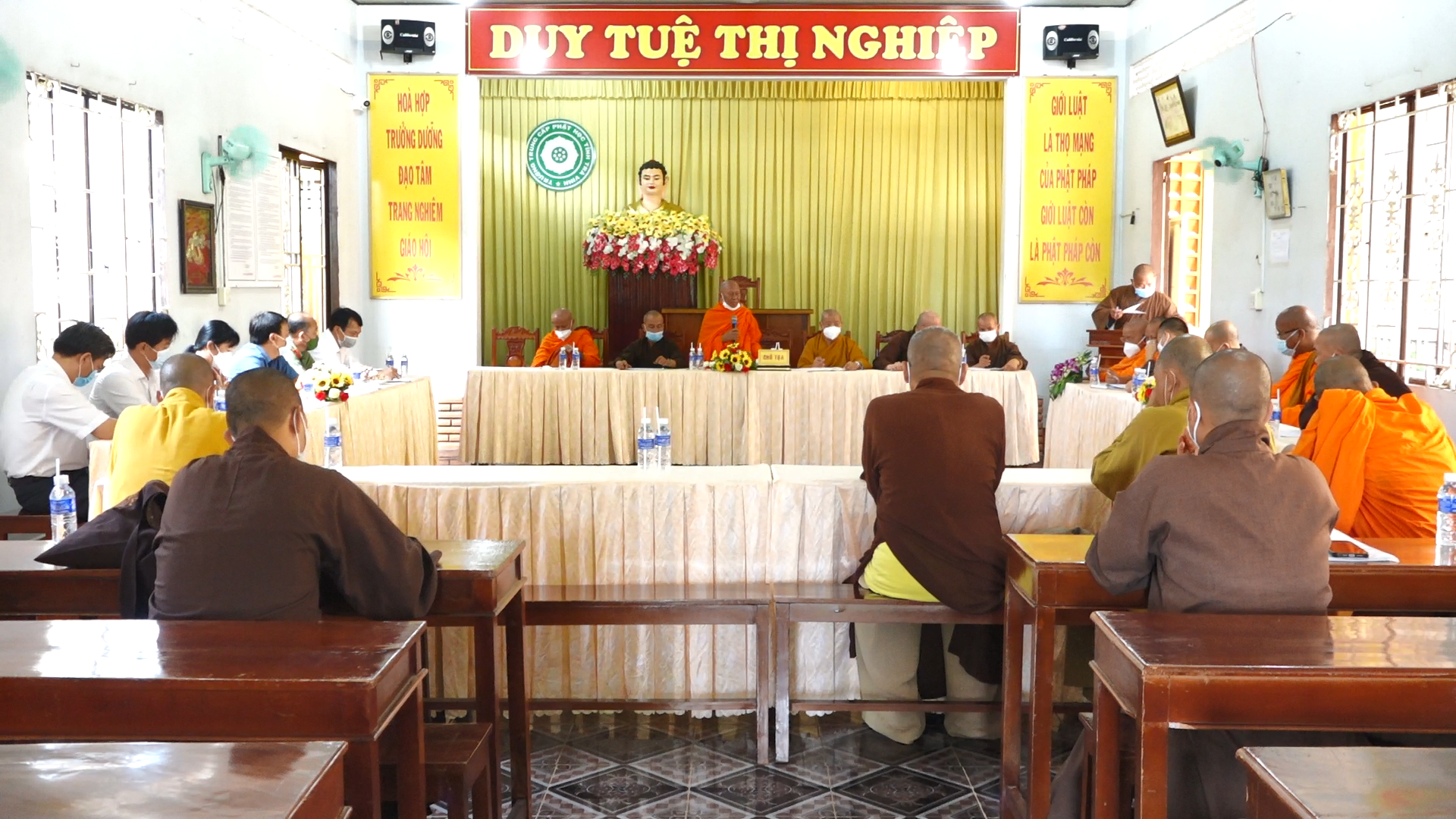 PSO – Sáng ngày 24/10/2021, Thường trực BTS GHPGVN tỉnh Trà Vinh đã tổ chức phiên họp nhằm rà soát danh sách nhân sự Đại Hội đại biểu Phật giáo huyện, thị, thành phố nhiệm kỳ 2021 – 2026 tại chùa Lưỡng Xuyên, số 3 Lê Lợi, P1. TP. Trà Vinh.