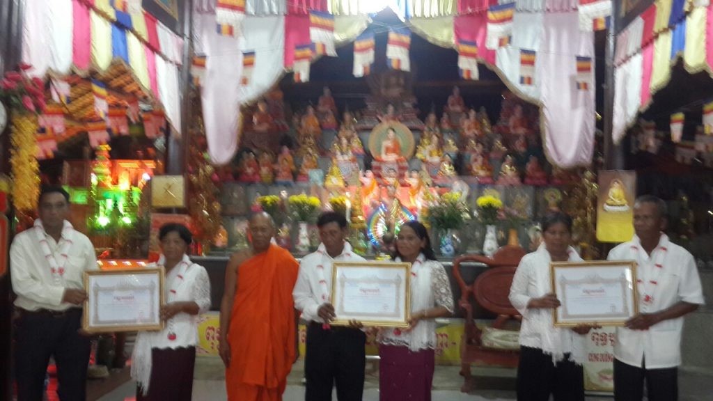 Chứng minh và tham dự buổi lễ có HT. CanDaSiRi Thạch Sok Xane - Phó chủ tịch HĐTS, Trưởng BTS GHPGVN tỉnh Trà Vinh, Chủ tịch Hội ĐKSSYN tỉnh, Trụ trì chùa AngKorajaBorey(Âng) cùng gần 40 vị chư Tăng tại bổn Tự, BQT chùa, 03 gia đình thí chủ và bà con Phật tử đồng tham dự.