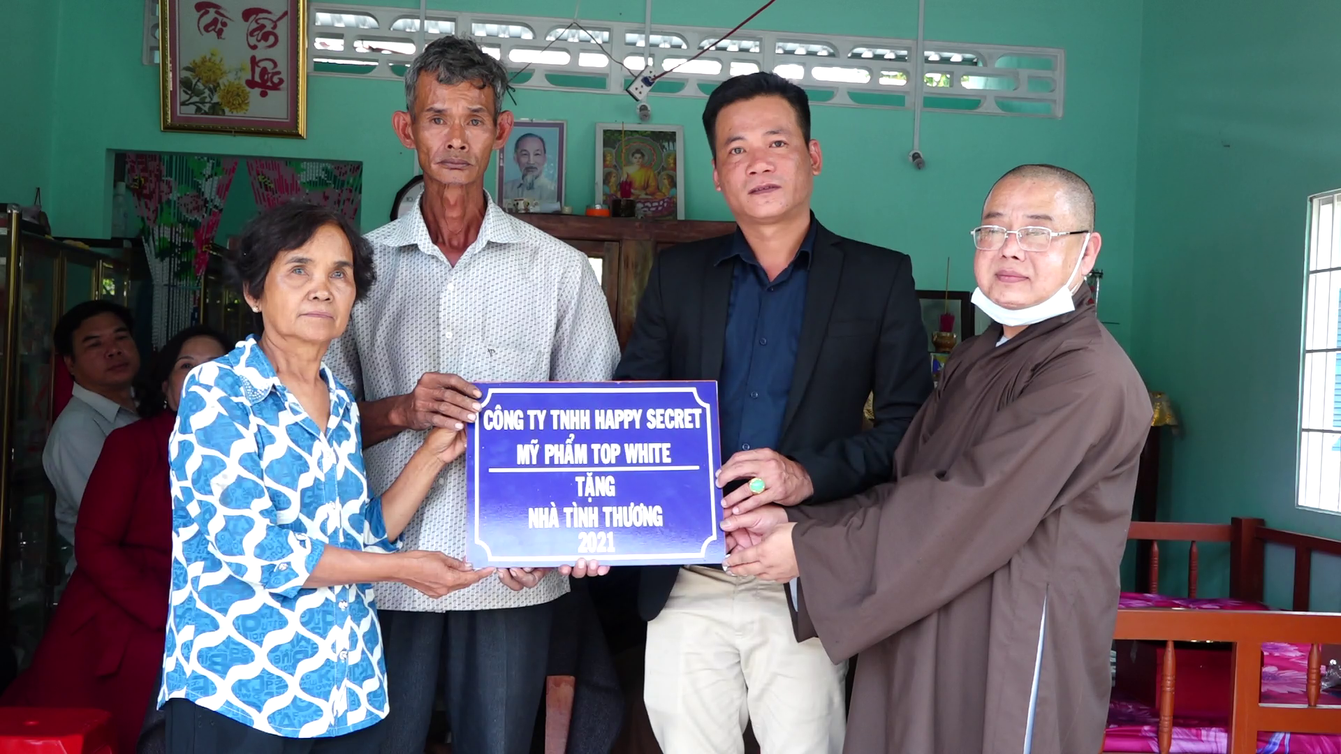 Tại đây TT. Thích Từ Trí chia sẻ với gia đình đây là tấm lòng người con Phật và Mạnh thường quân Cty trách nhiệm hữu hạn Happy Secret mỹ phẩm Top White mong gia đình vượt qua khó khăn, sớm ổn định cuộc sống. Thượng tọa cũng cảm ơn quý mạnh thường quân và Phật tử đã hỗ trợ tịnh tài và chính quyền địa phương đã góp công xây dựng căn nhà cho gia đình ông Thạch Chày, ấp Ba So, Hiệp Hòa, Cầu Ngang, Trà Vinh.