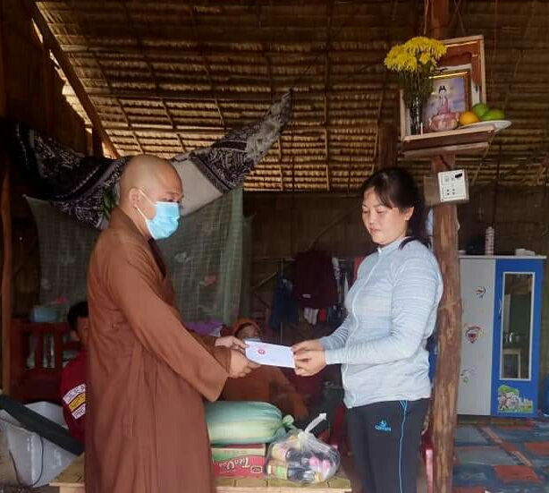 Tại nơi đến, ĐĐ. Thích Minh Thành - chùa Khánh Minh, gửi lời thăm hỏi tình hình hoàn cảnh các gia đình. Dịp này, chùa hỗ trợ mỗi gia đình 4 triệu đồng và một phần quà trị giá 300 ngàn đồng, bao gồm các nhu yếu phẩm như: gạo, mì, ...với tổng kinh phí là 12.900.000 đồng.
