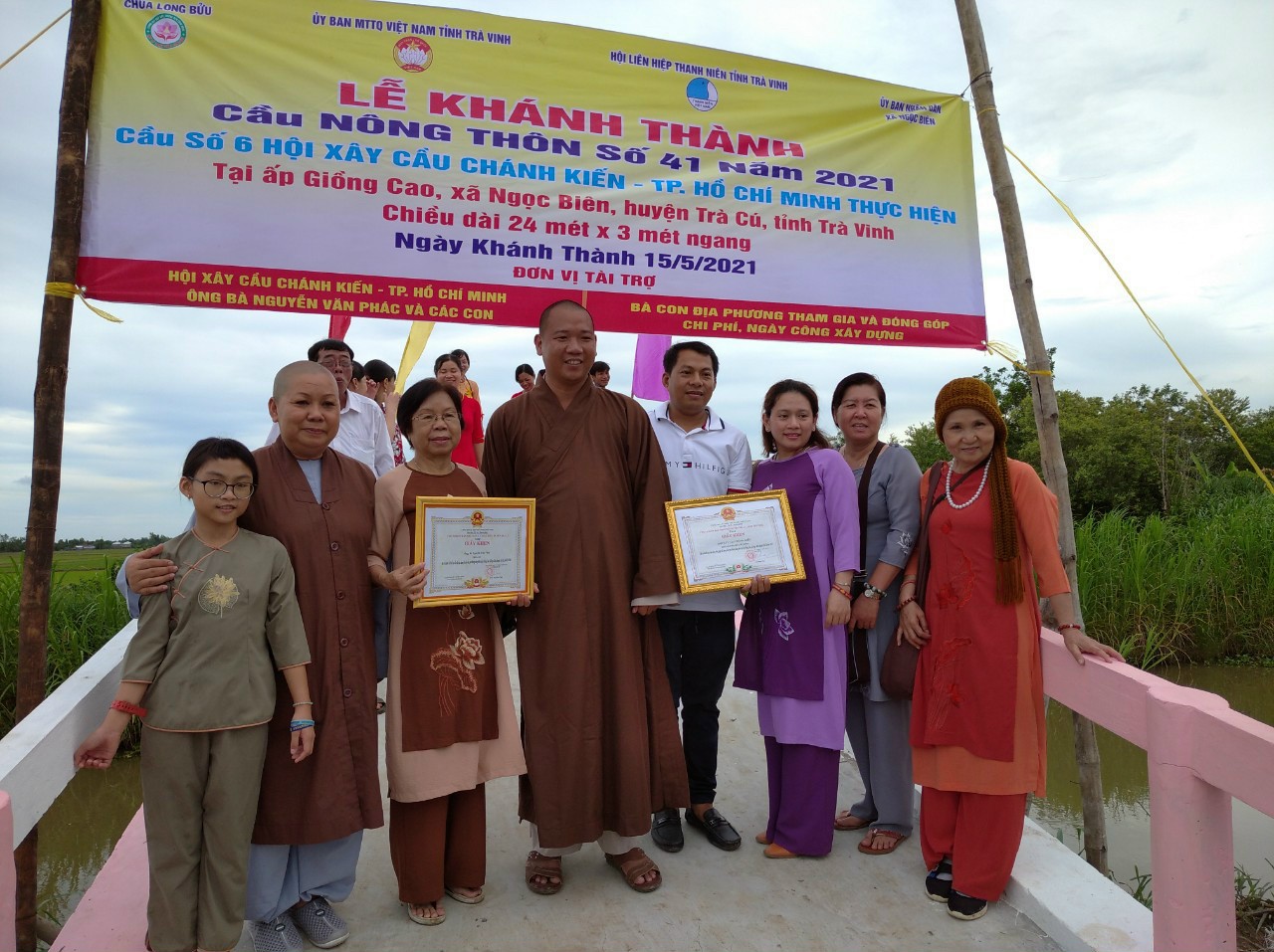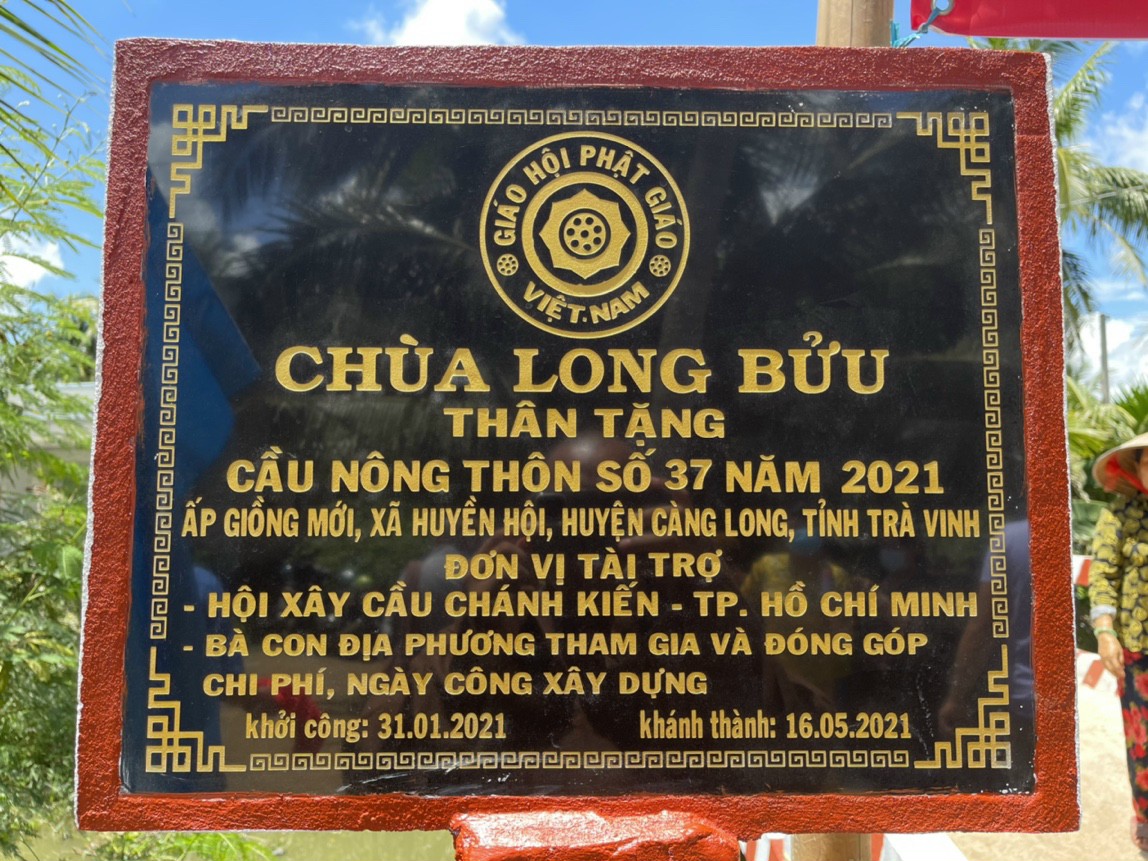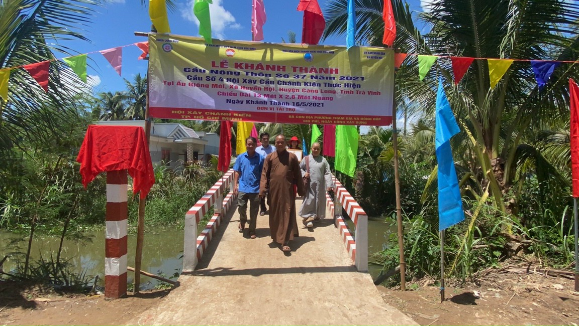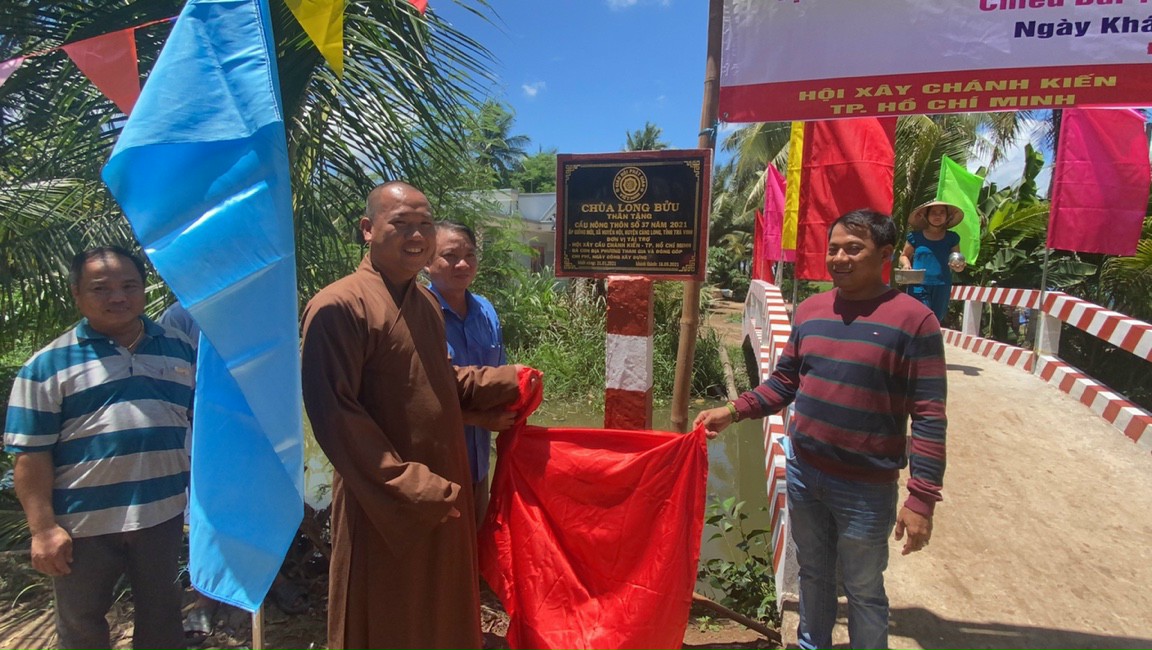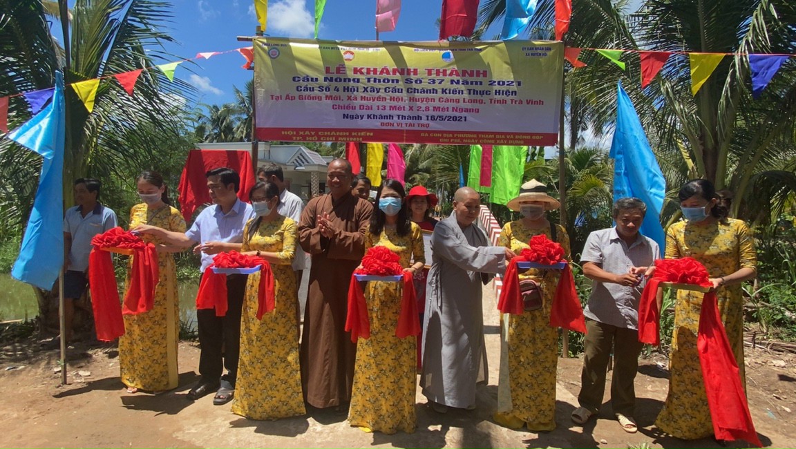 PSO - Sáng ngày 16/5/2021 (nhằm ngày 05/4 năm Tân Sửu), ĐĐ. Thích Minh Trí - Trụ trì chùa Long Bửu (xã Nhị Long), Hội xây cầu Chánh Kiến (TP.HCM) đã kết hợp cùng chính quyền địa phương long trọng tổ chức lễ khánh thành bàn giao cầu giao thông nông thôn số 37, tại ấp Giồng Mới, xã Huyền Hội, huyện Càng Long, tỉnh Trà Vinh.