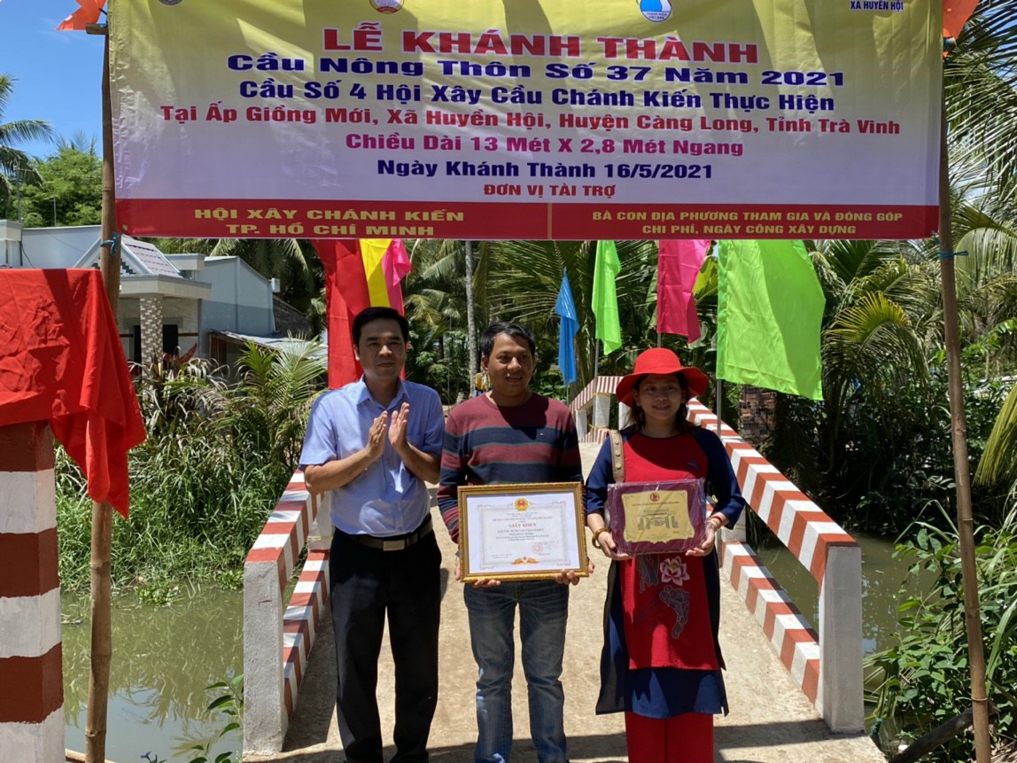Được biết, cây cầu số 37 được Hội xây cầu Chánh Kiến vận động ủng hộ chi phí vật tư xây dựng, bà con địa phương tham gia đóng góp công thợ và ngày công lao động. Cầu có chiều dài 13 mét, chiều rộng 2,8 mét, trọng tải 3 tấn phục vụ cho sản xuất nông nghiệp và vận chuyển hàng hoá của bà con nhân dân địa phương với tổng kinh phí xây dựng trên 60 triệu đồng.