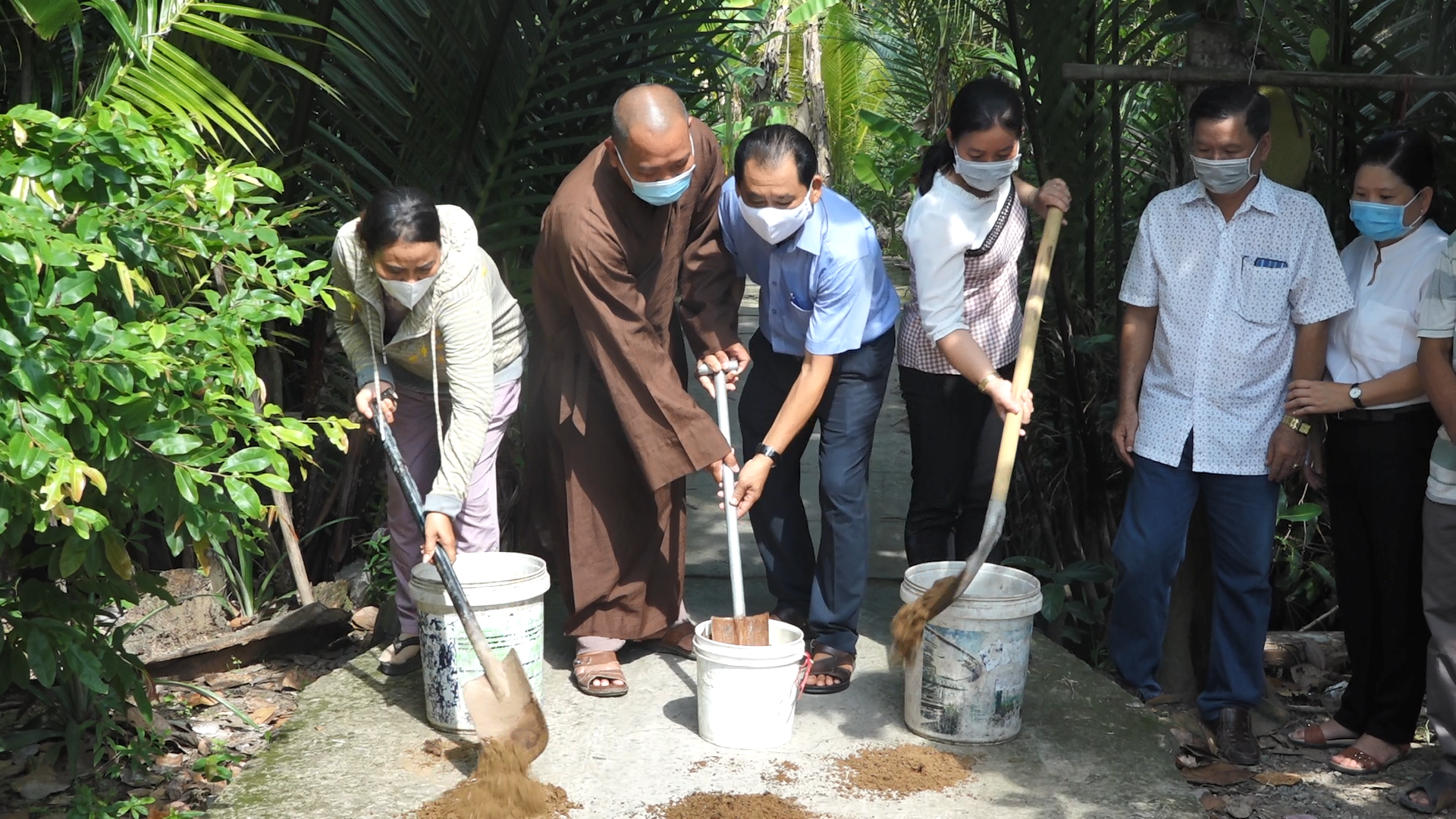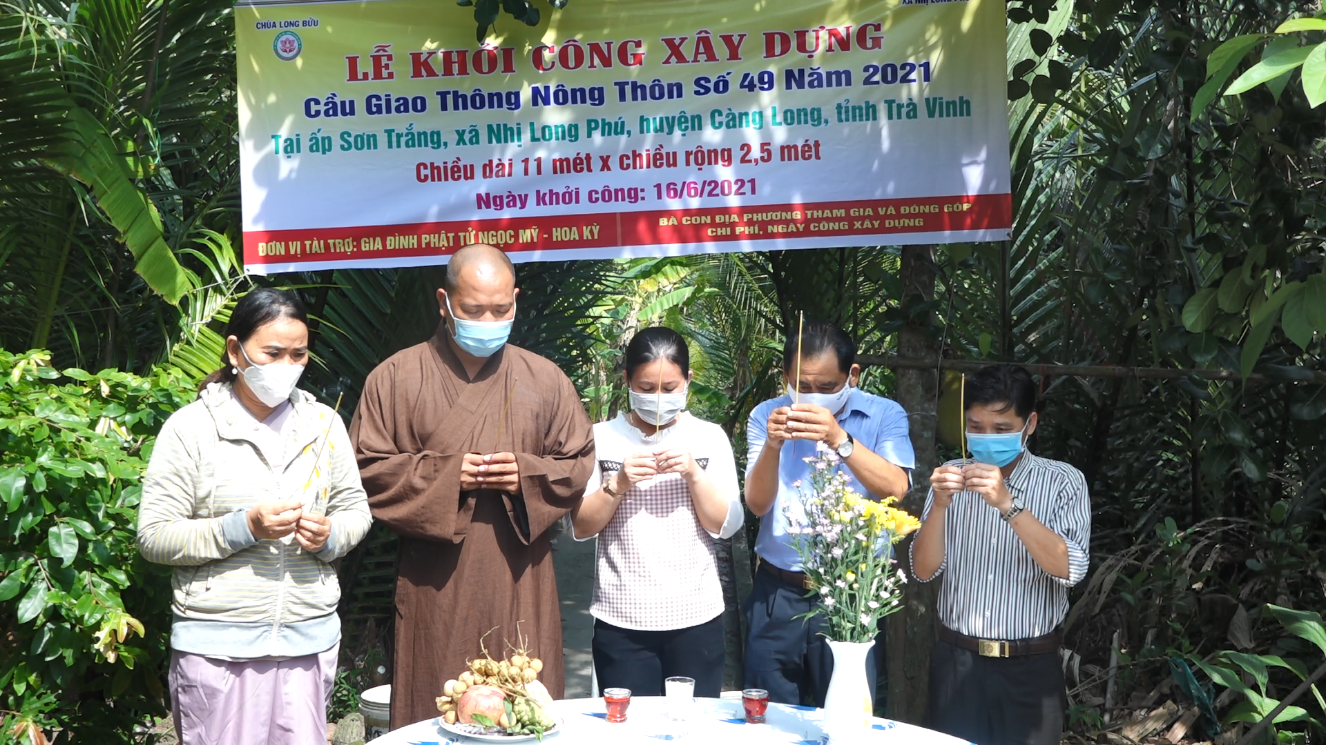 Buổi lễ khởi công xây dựng cầu giao thông nông thôn số 49 kết thúc bằng nghi thức tụng Kinh Chúc phúc và động thổ trong niềm hân hoan của tất cả mọi người.