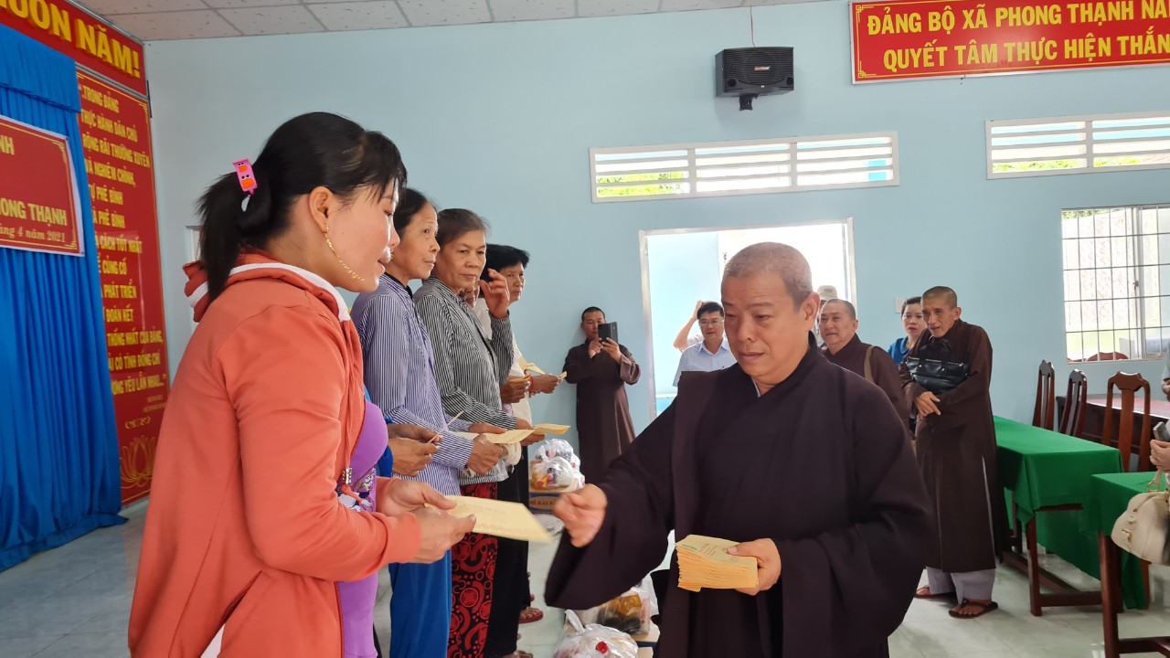 Tại buổi phát quà, HT.Thích Trí Minh đã thay mặt cho chư Tăng khuyến tấn bà con cùng nhau nuôi chí làm ăn, tu hạnh lương thiện, sống từ bi, để có ích cho xã hội và quốc gia. Đại diện chính quyền xã Phong Thạnh rất cảm kích trước tấm lòng của chư Tăng, đặc biệt là HT.Thích Trí Minh đã luôn cùng chính quyền xã trong các công tác an sinh xã hội của địa phương.
