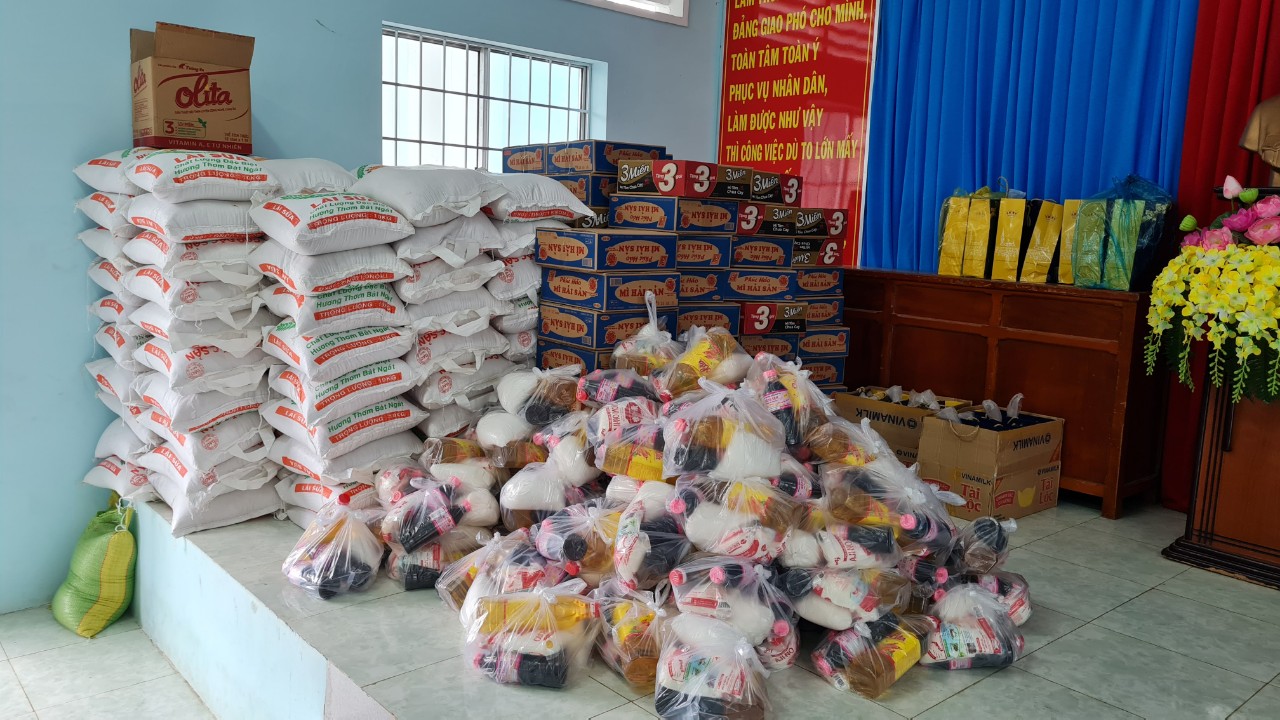Mỗi phần quà gồm có gạo, mì, bột ngọt, đường, dầu ăn và 200 ngàn đồng tiền mặt. Tổng trị giá chung của các phần quà là 45 triệu đồng.
