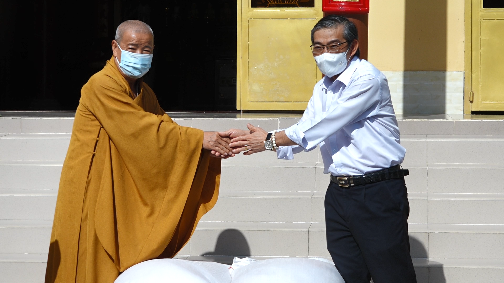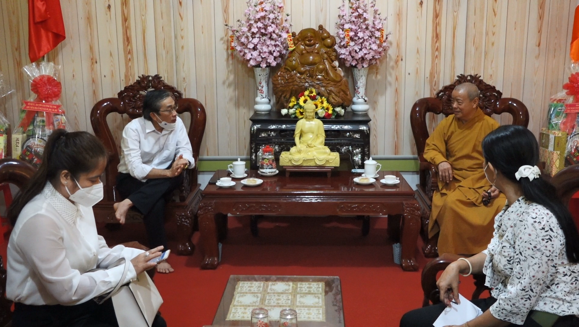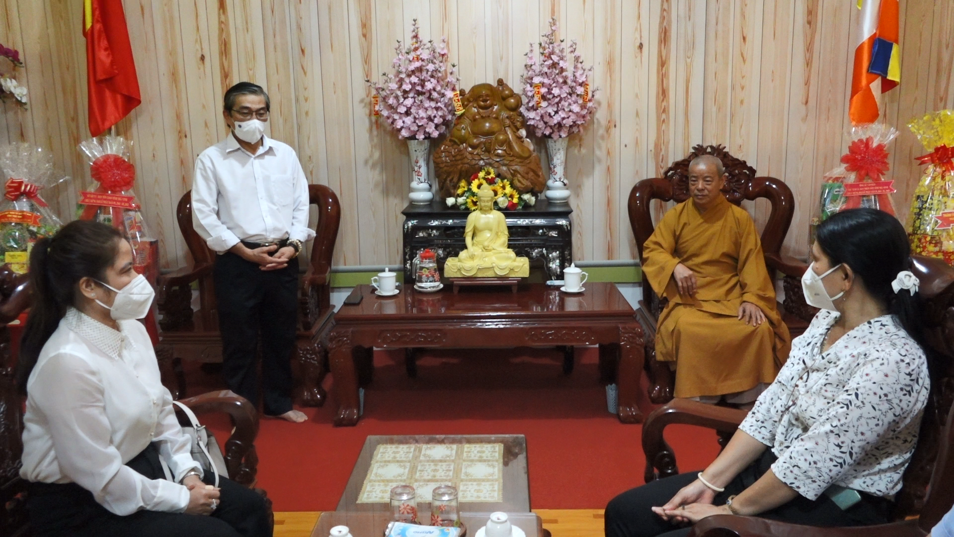 Thay mặt thường trực BTS GHPGVN tỉnh, HT. Thích Trí Minh đã gởi lời cảm ơn đến đoàn UB MTTQVN tỉnh đã đến thăm. Hòa thượng cũng cho biết thời gian tới Phật giáo tỉnh nhà sẽ tiếp tục vận động kêu gọi để giúp đỡ bà con gặp khó khăn do dịch bệnh gây ra. Cũng như tuyên truyền đến Tăng, Ni, Phật tử chấp hành nghiêm những quy định của Bộ y tế, để dịch bệnh sớm được đẩy lùi, mọi người sớm trở lại cuộc sống bình thường. Nguyện cầu chư Phật gia hộ cho đoàn được nhiều sức khỏe, an lạc, hanh thông trong công việc, hoàn thành tốt mọi nhiệm vụ mà Đảng, Nhà nước và Nhân dân giao phó.