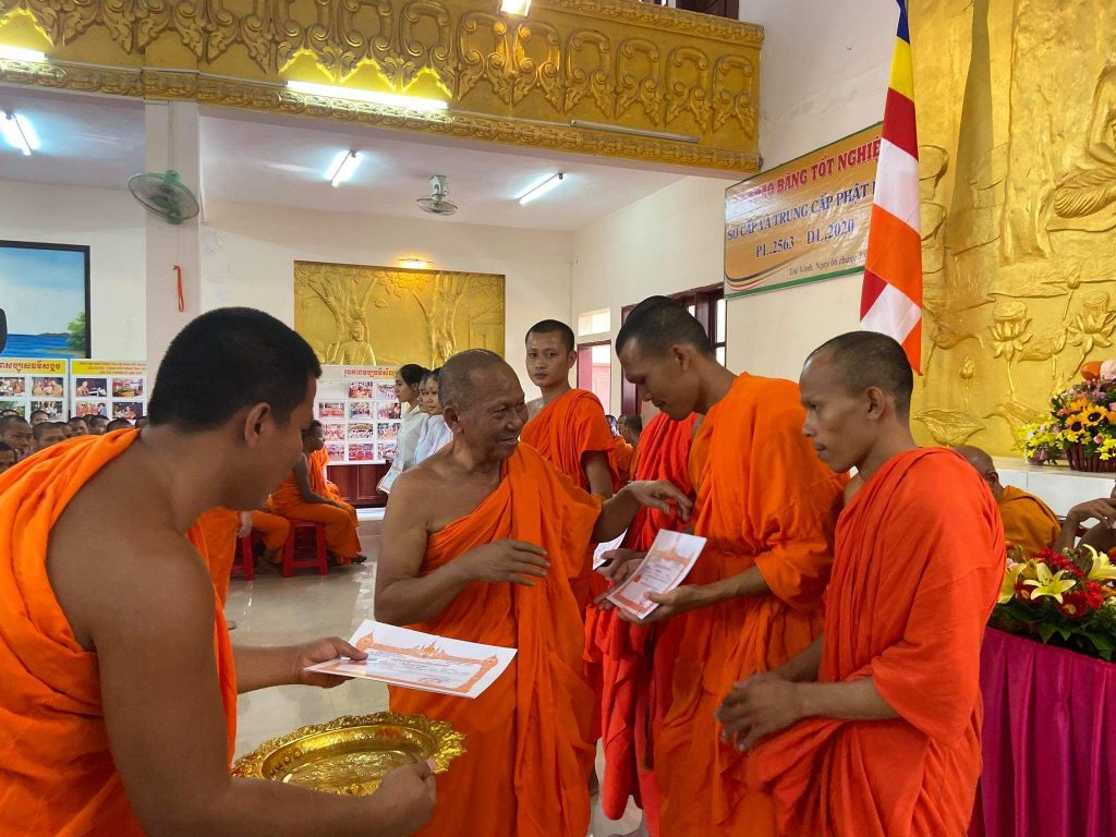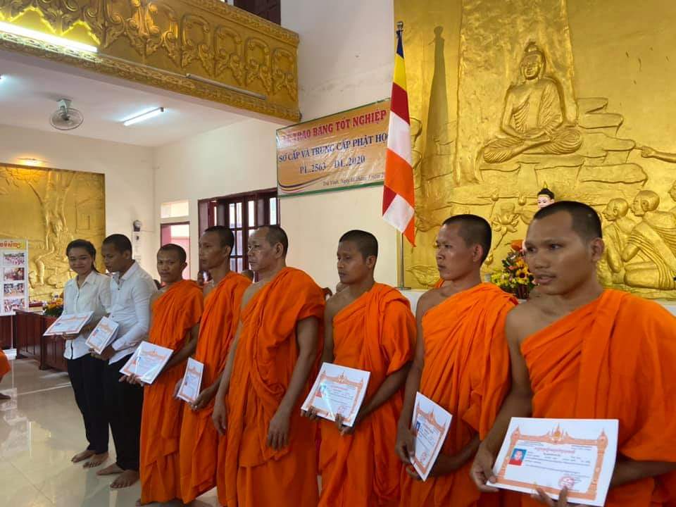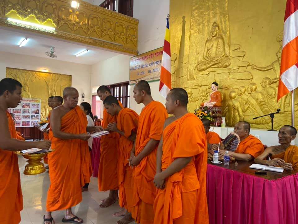 Cuối buổi lễ, là phần tuyên đọc quyết định trao bằng tốt nghiệp cho Tăng thí sinh. ĐĐ. Thạch Nhứt - Phó Thư ký ban Giáo dục Phật học Tỉnh hội đã thông qua các danh sách nhận bằng lớp Sơ cấp Phật học gồm: 213 vị là Tăng sinh, 106 vị là học sinh. ĐĐ. Thạch Đa Ra - Phó Thư ký ban Giáo dục Tỉnh hội đọc danh sách nhận bằng lớp Trung cấp Phật học gồm: 105 vị là Tăng sinh, 20 vị là Học sinh. Chương trình kết thúc trong không khí vui tươi và thập phần viên mãn.